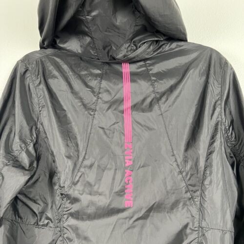 ZYIA Active Womens Lightweight Full Zip Hooded Windbreaker Black Sz M