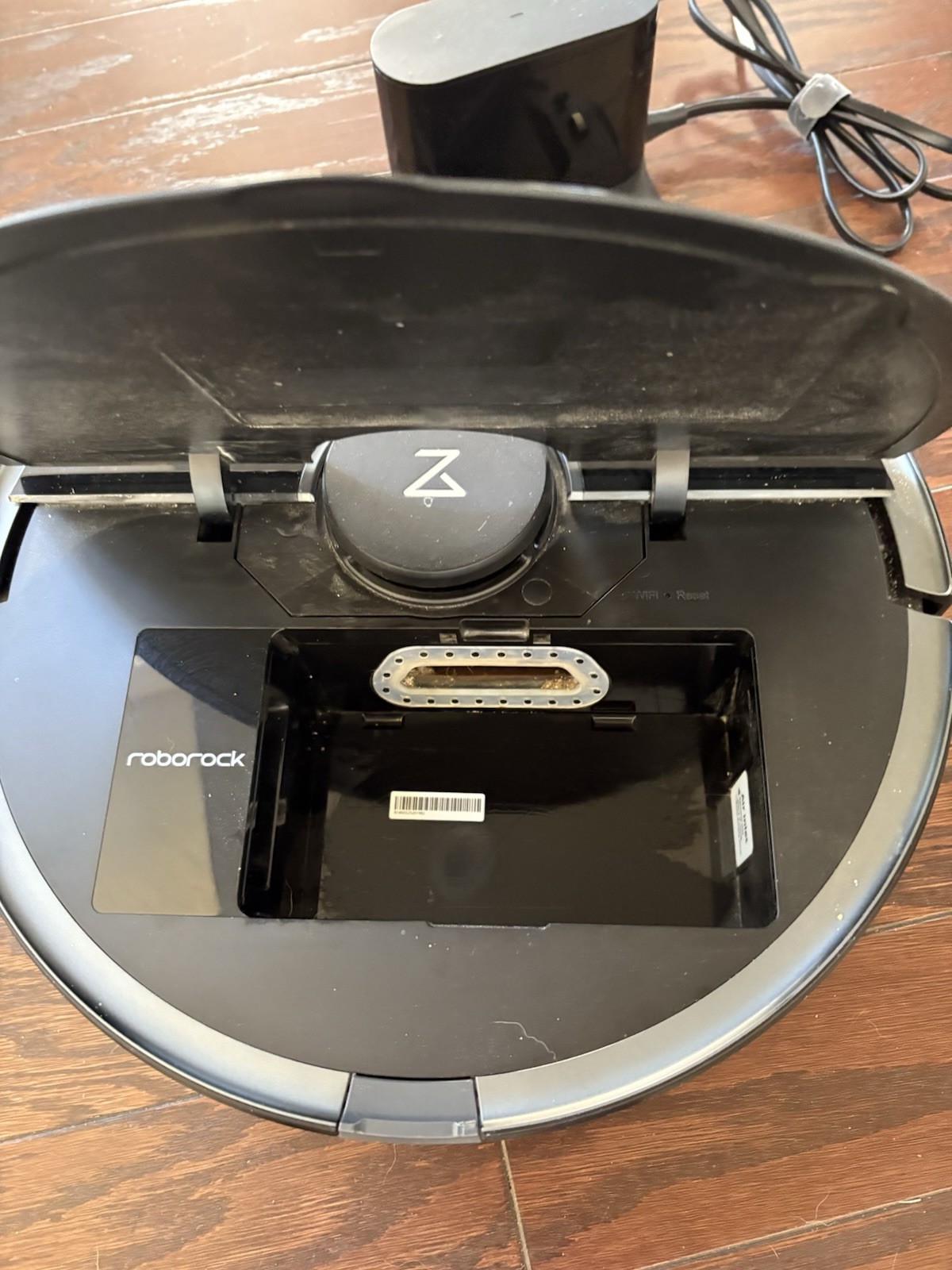 Black roborock S7 Robot Vacuum with base, charger and extra parts