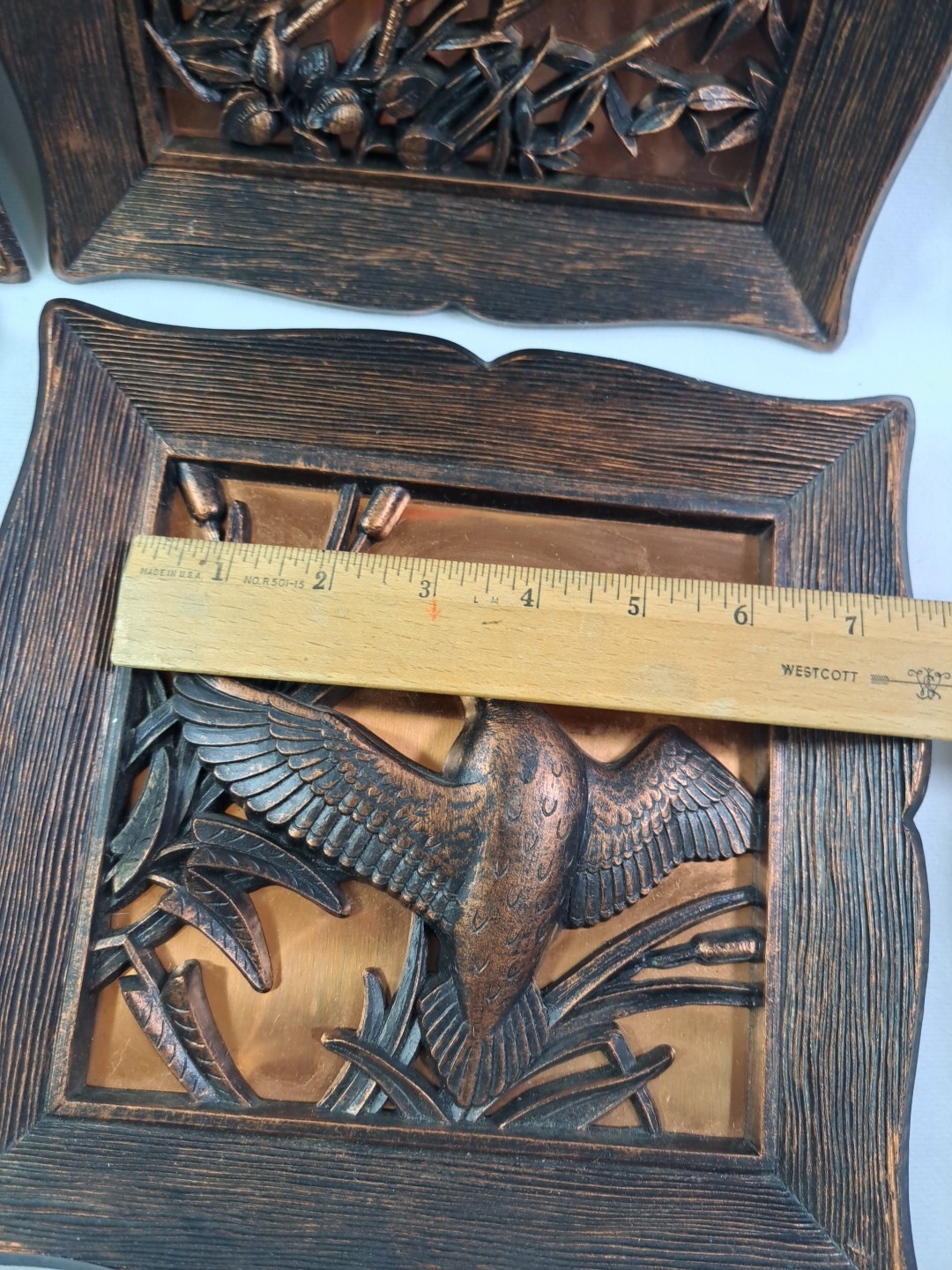 Vintage Primitive Colonial Copper Wall Hanging Plates Set of 4 Ducks Pheasants
