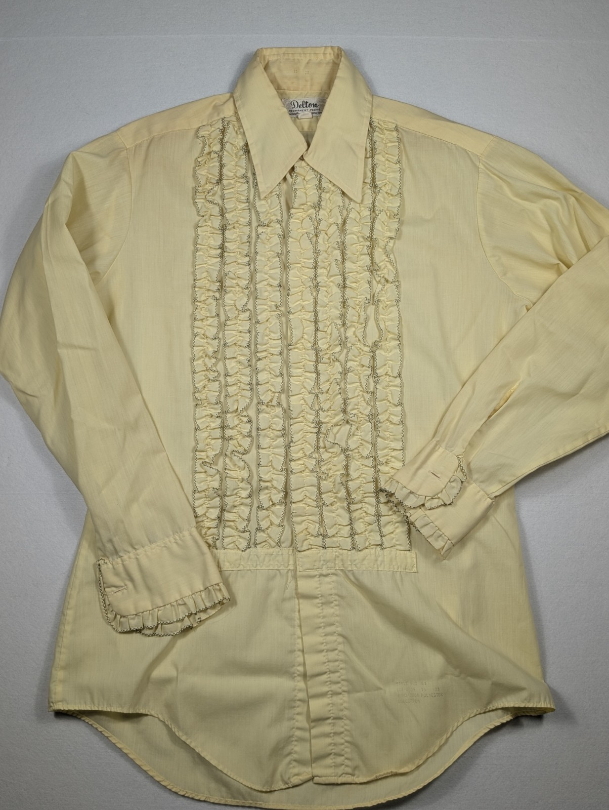 как выглядит Vintage 70s Delton Ruffle Tuxedo Shirt French Cuff Size 15 33 Yellow Disco фото
