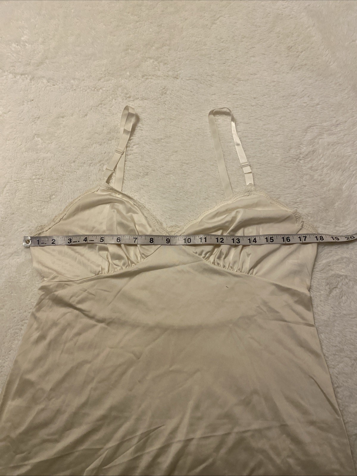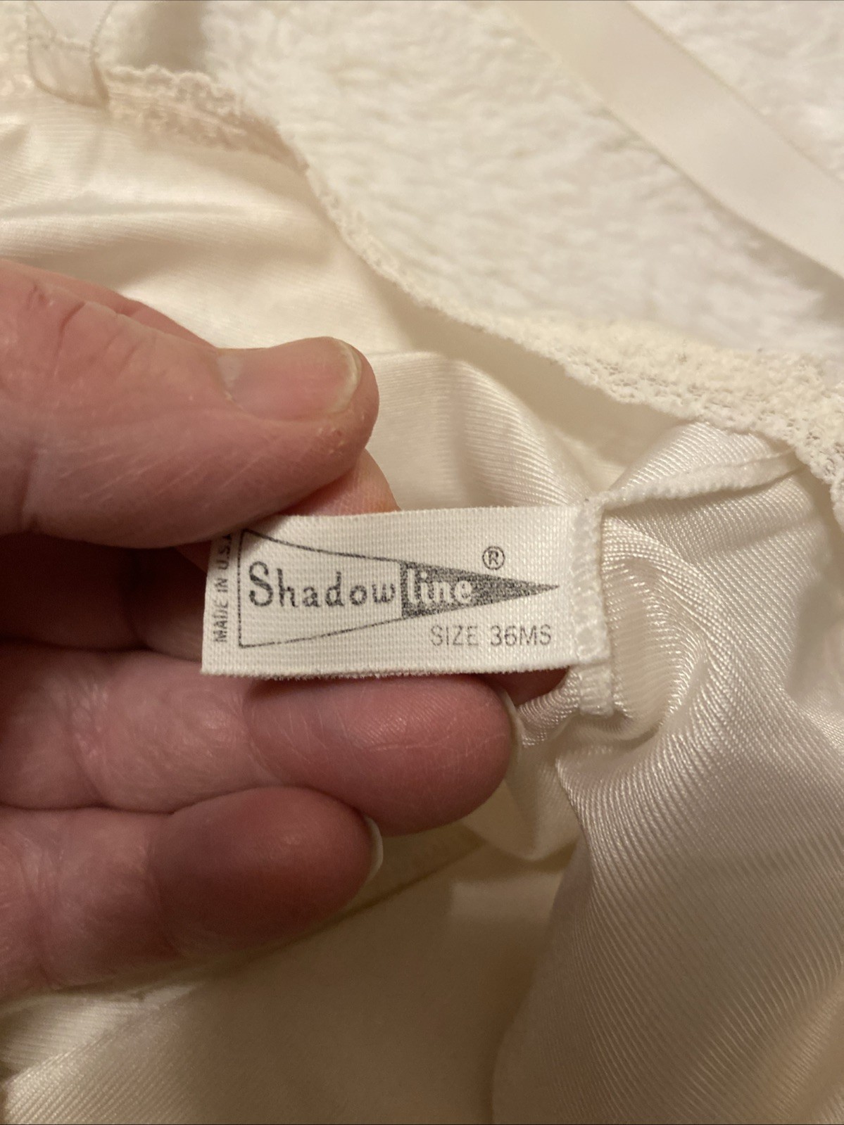 Vintage Shadowline Full Slip Womens Sz 36 MS Ivory Lace Made in USA Adjustable