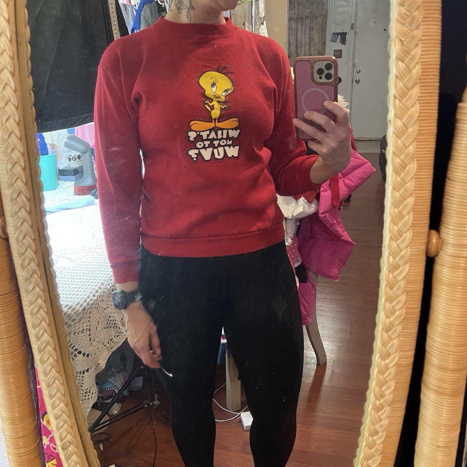 как выглядит Vintage 1997 Looney Tunes Youth Large Red Tweety Bird Pullover Sweatshirt фото