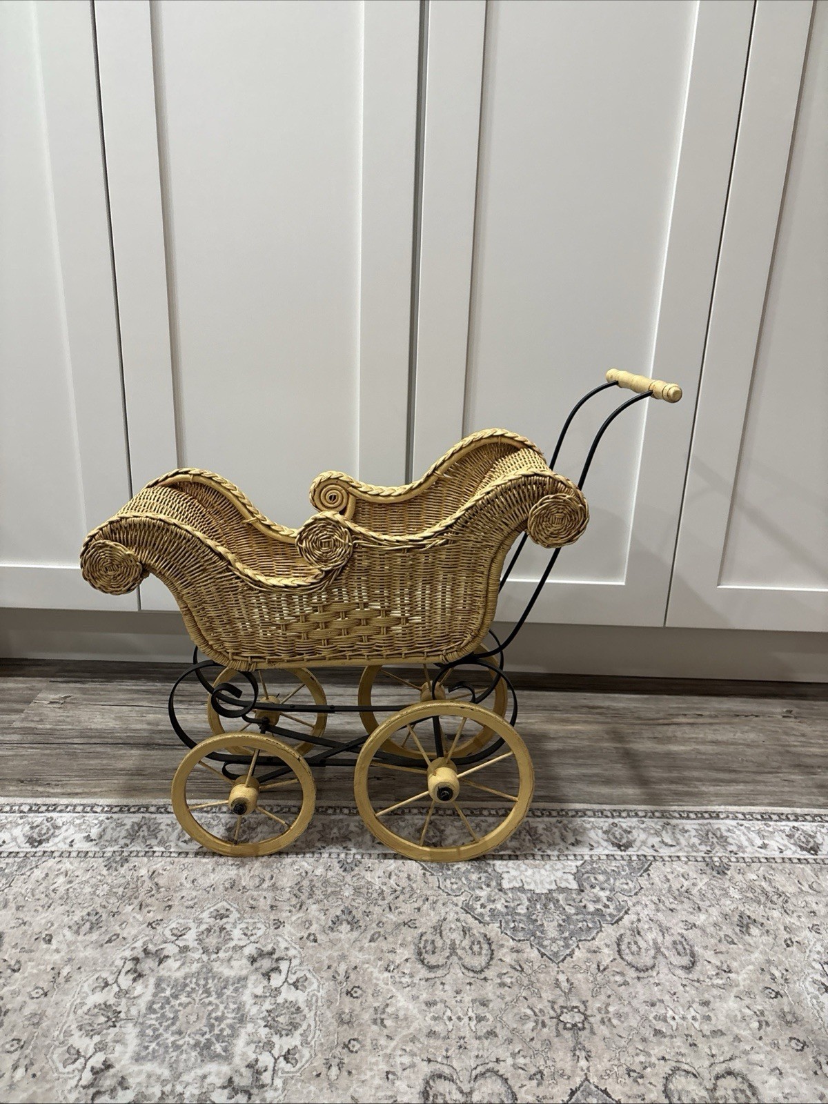 как выглядит VINTAGE CHILDS TOY DOLL STROLLER BABY CARRIAGE W/PARASOL GREAT CONDITION FOR AGE фото
