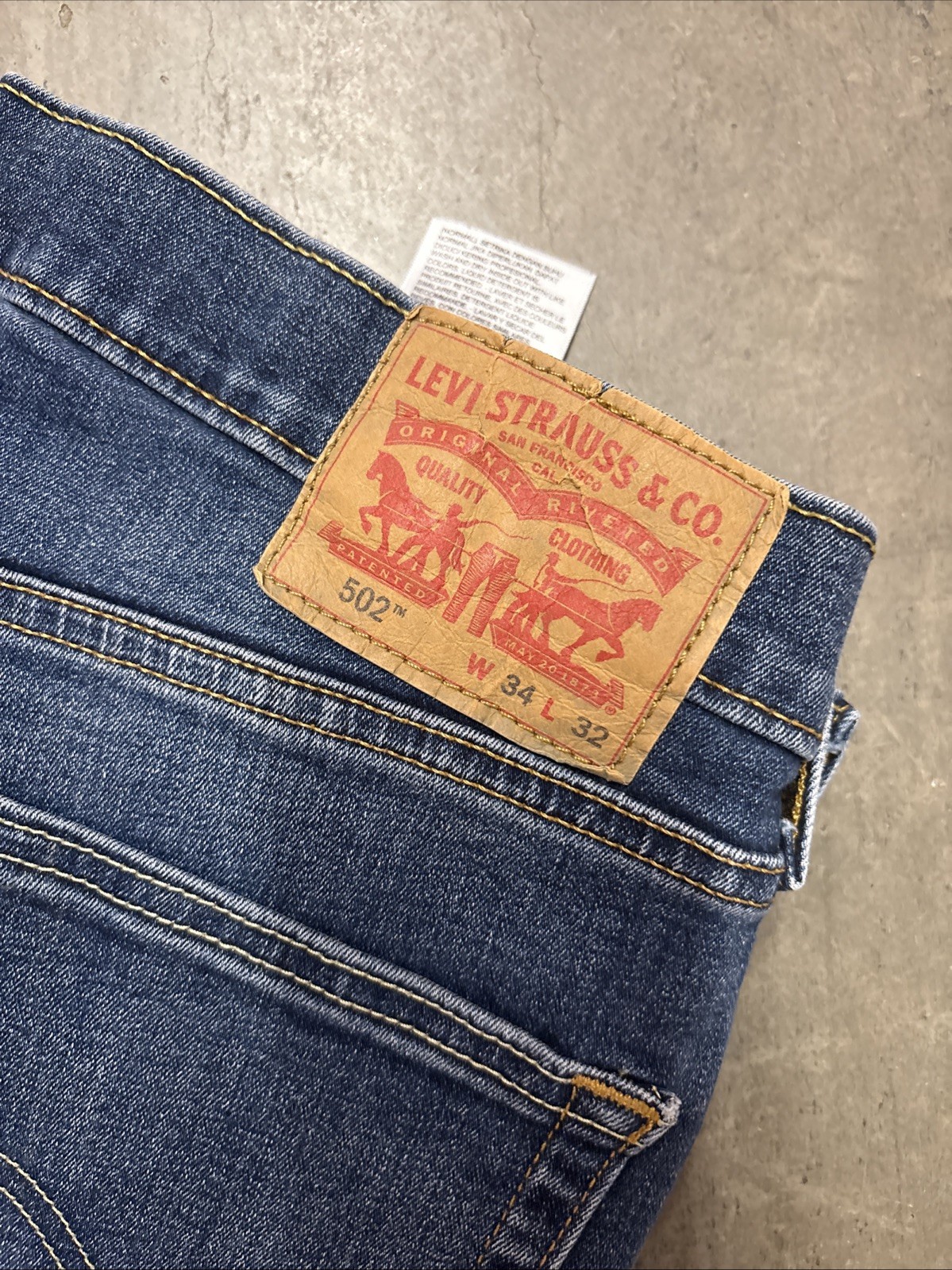 MEN'S LEVI JEANS 502 Multiple Sizes Taper SELVEDGE Premium Denim Blue 34x32