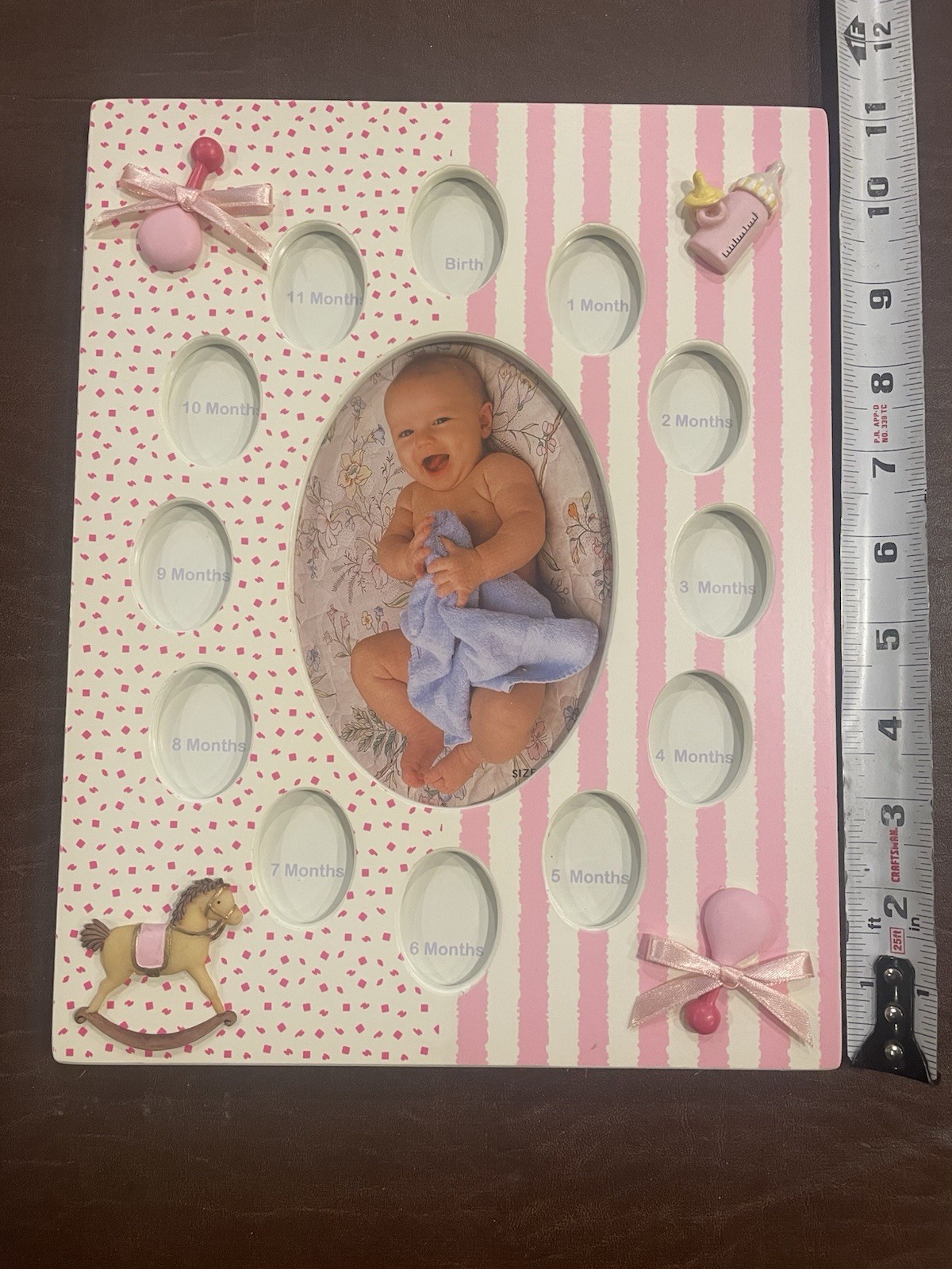 как выглядит Vintage GFT Year Frame Pink Rattle Item 024786, Baby s 1st Yr. New In Box фото