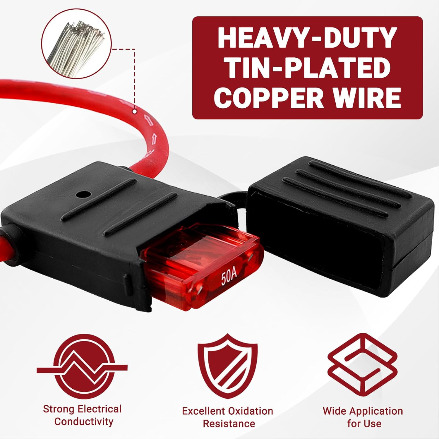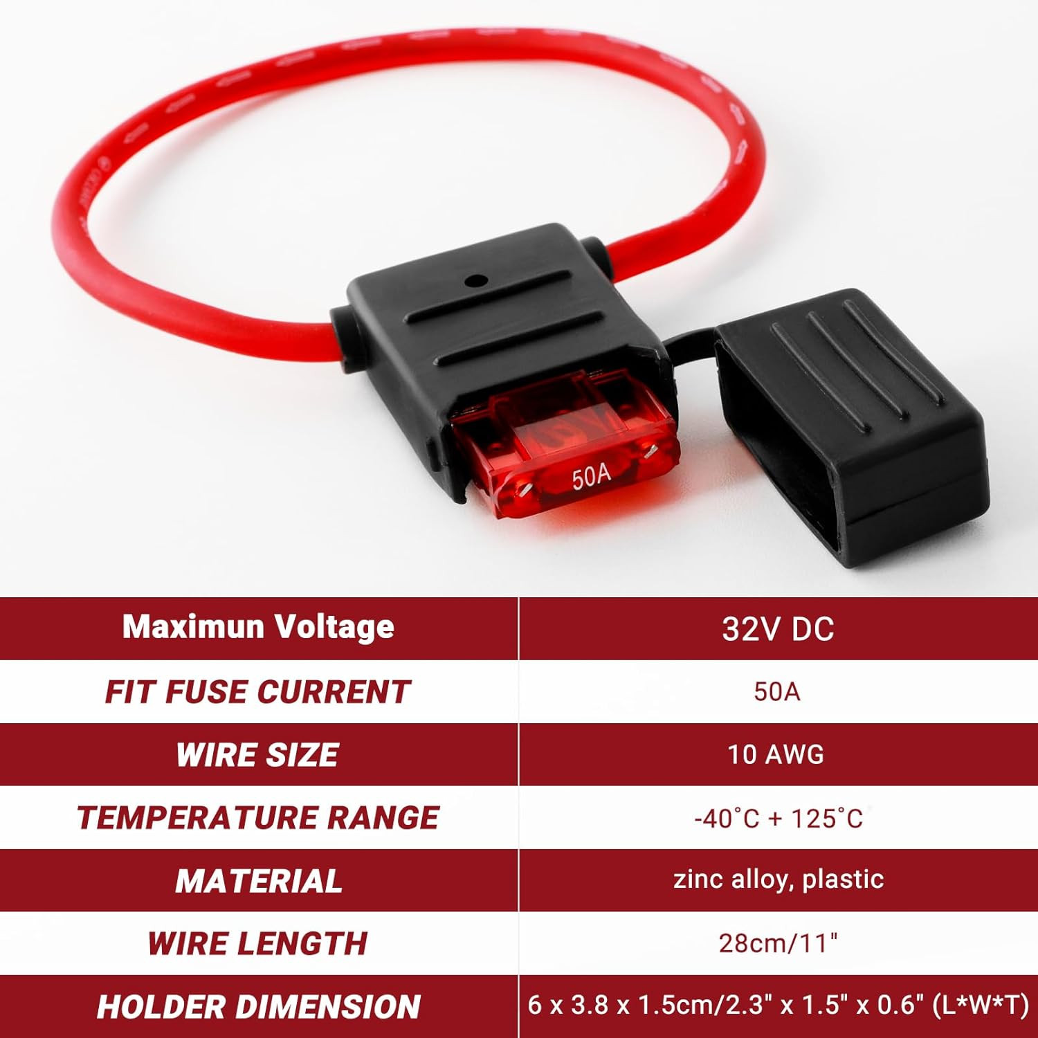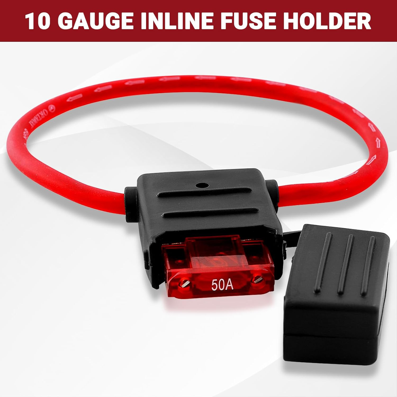 10 Gauge Inline Fuse Holder: 12V-32V with 50 AMP Maxi Blade Fuses Waterproof P