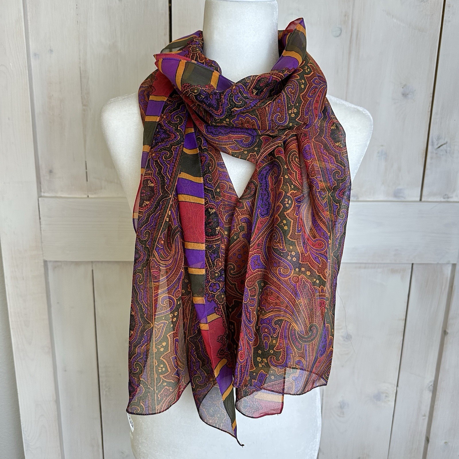 Vintage Paisley Rectangle Scarf Semi- Sheer Colorful Made In Italy 23 X 70