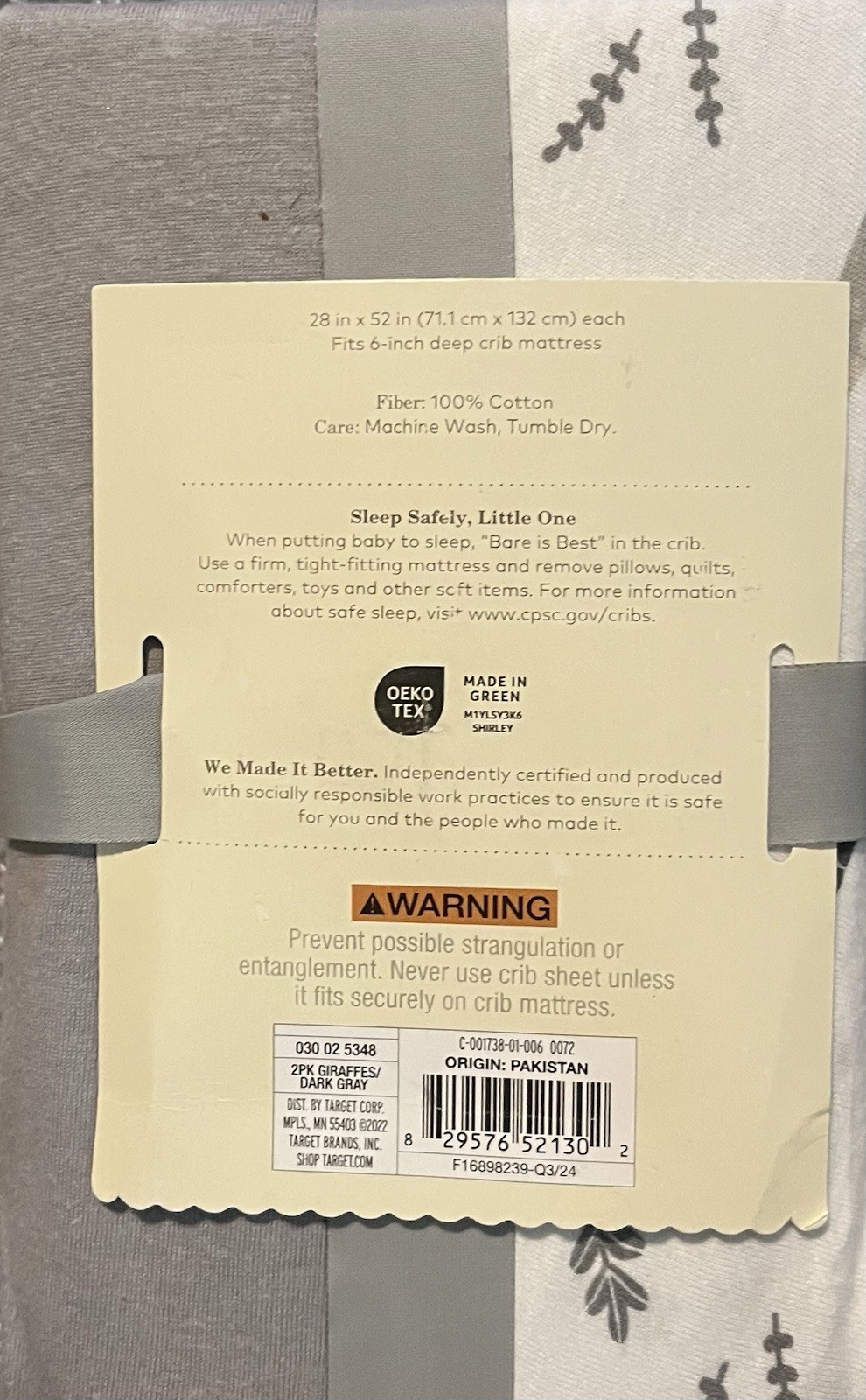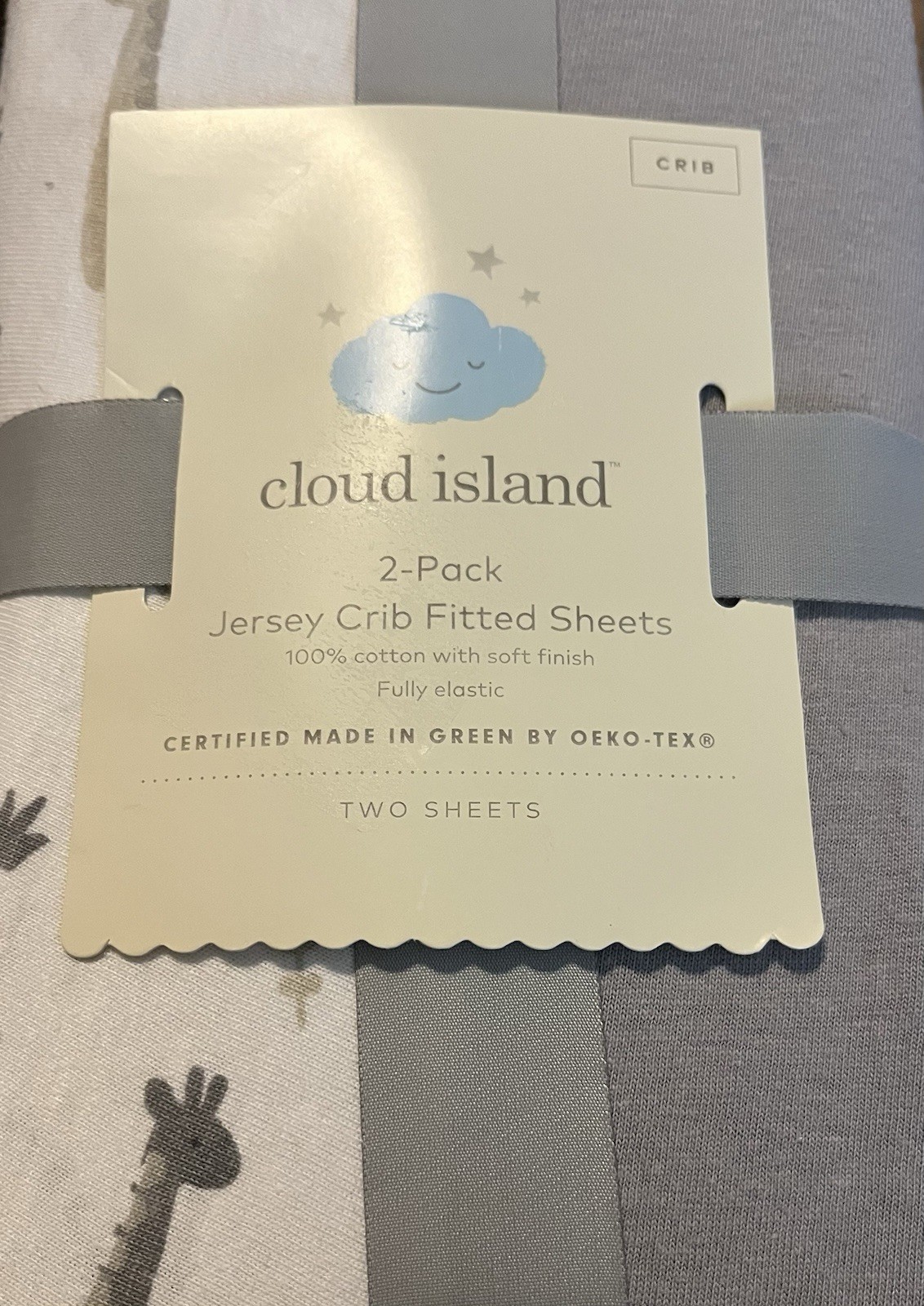 Cloud Island Dark Gray White Giraffes Fitted Jersey Sheet Crib Set-2 Pack, New