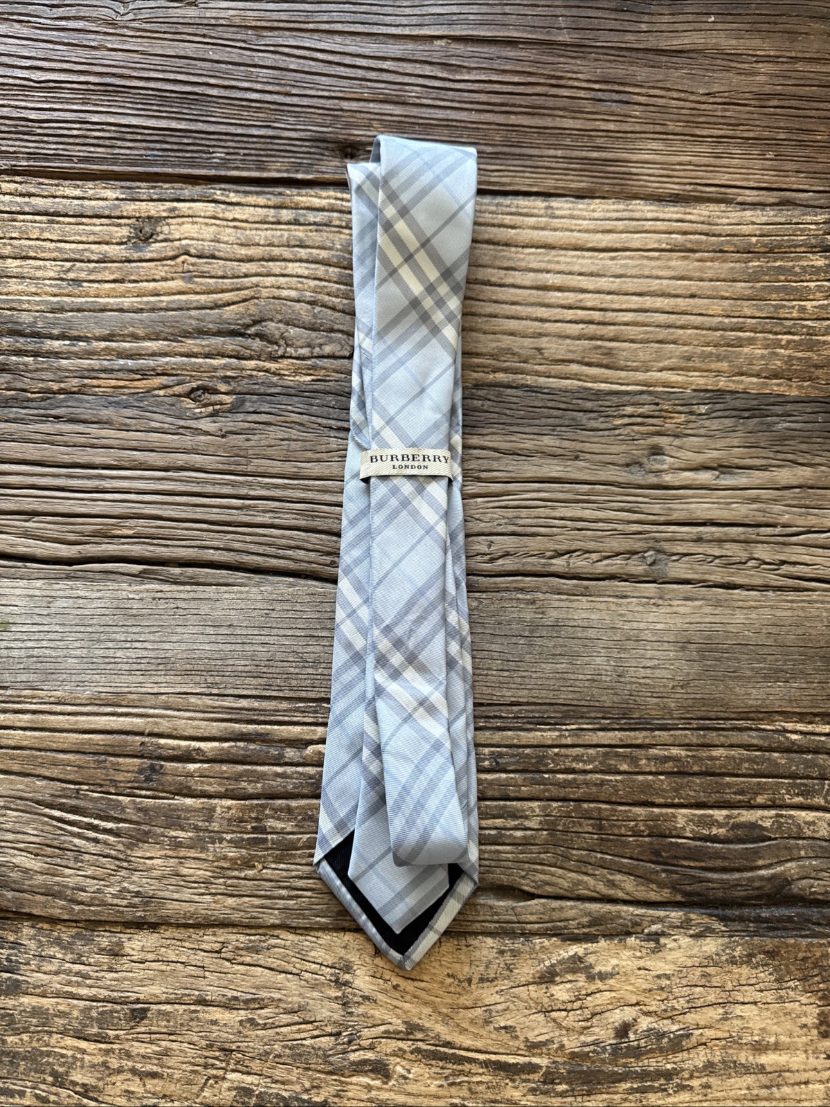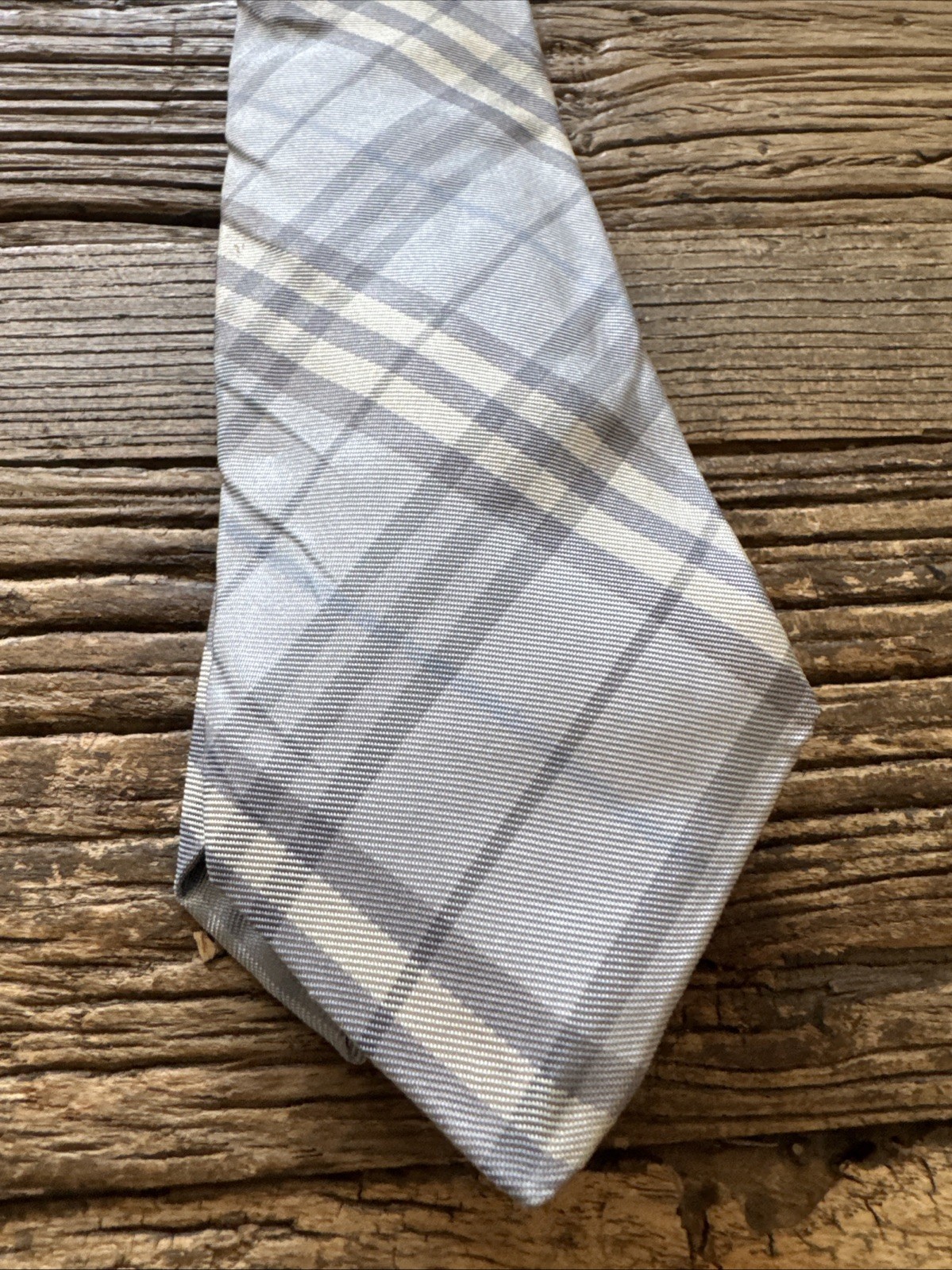 Burberry London Blue Gray Nova Check Silk Plaid Tie Skinny 2.5 EXCELLENT COND.