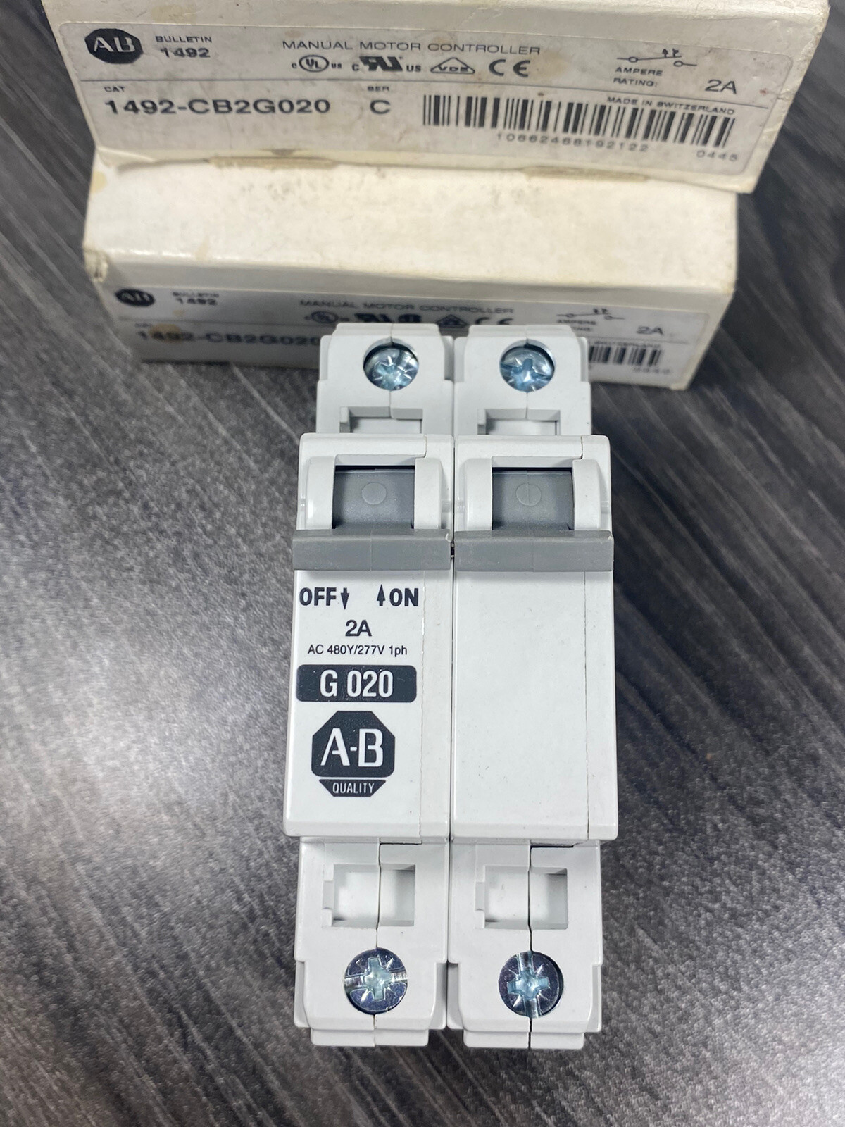 New Allen Bradley 1492-CB2-G020 Ser. C Circuit Breaker 2A, 2-P Lot of 2