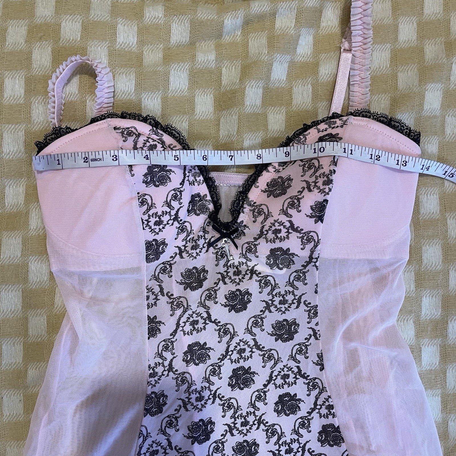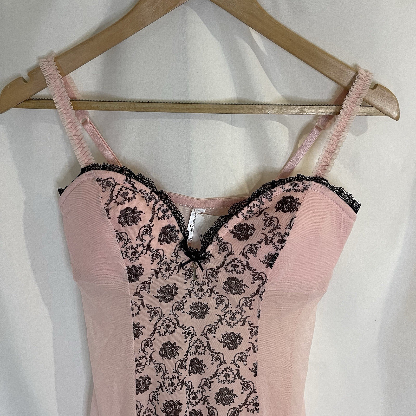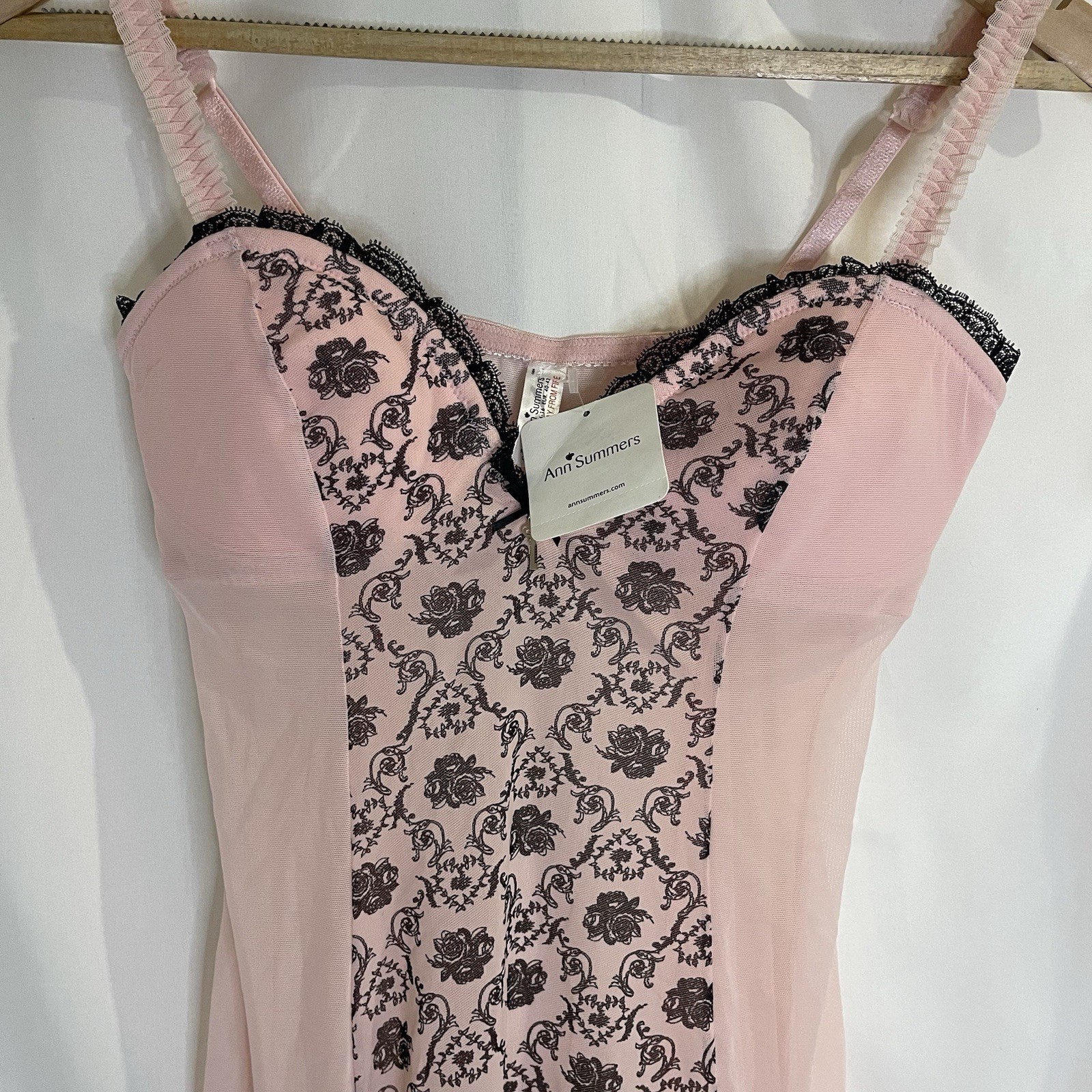 как выглядит Ann Summers UK 14 16 Florence Cami Suspender Black Pink Floral Mesh Lingerie фото
