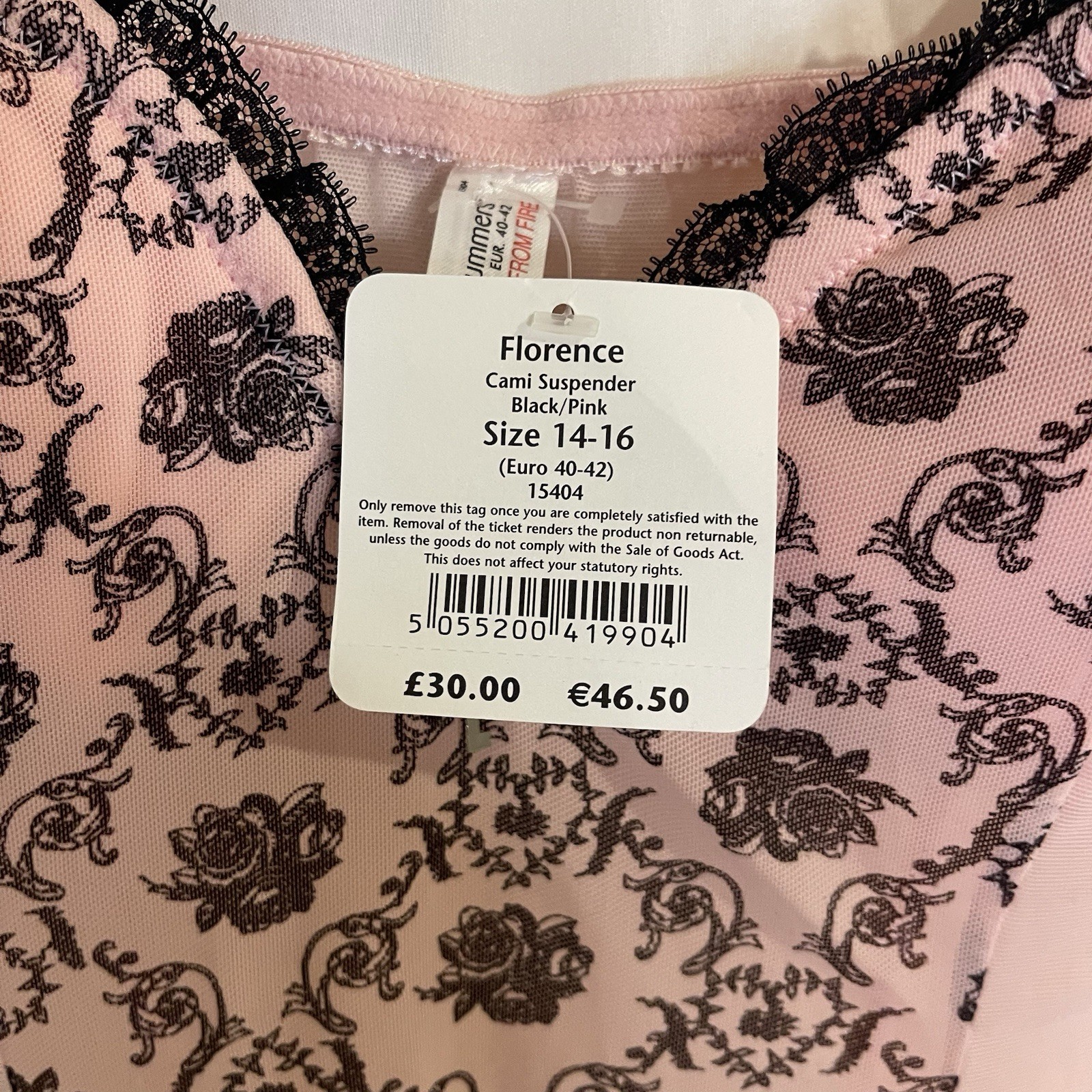 Ann Summers UK 14 16 Florence Cami Suspender Black Pink Floral Mesh Lingerie