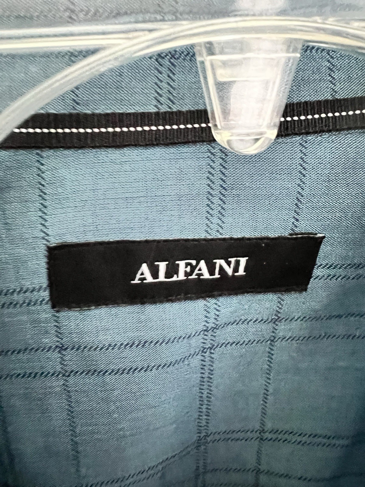 ALFANI Men s Blue Button-Up Shirt Long Sleeve Check Pattern Size XL