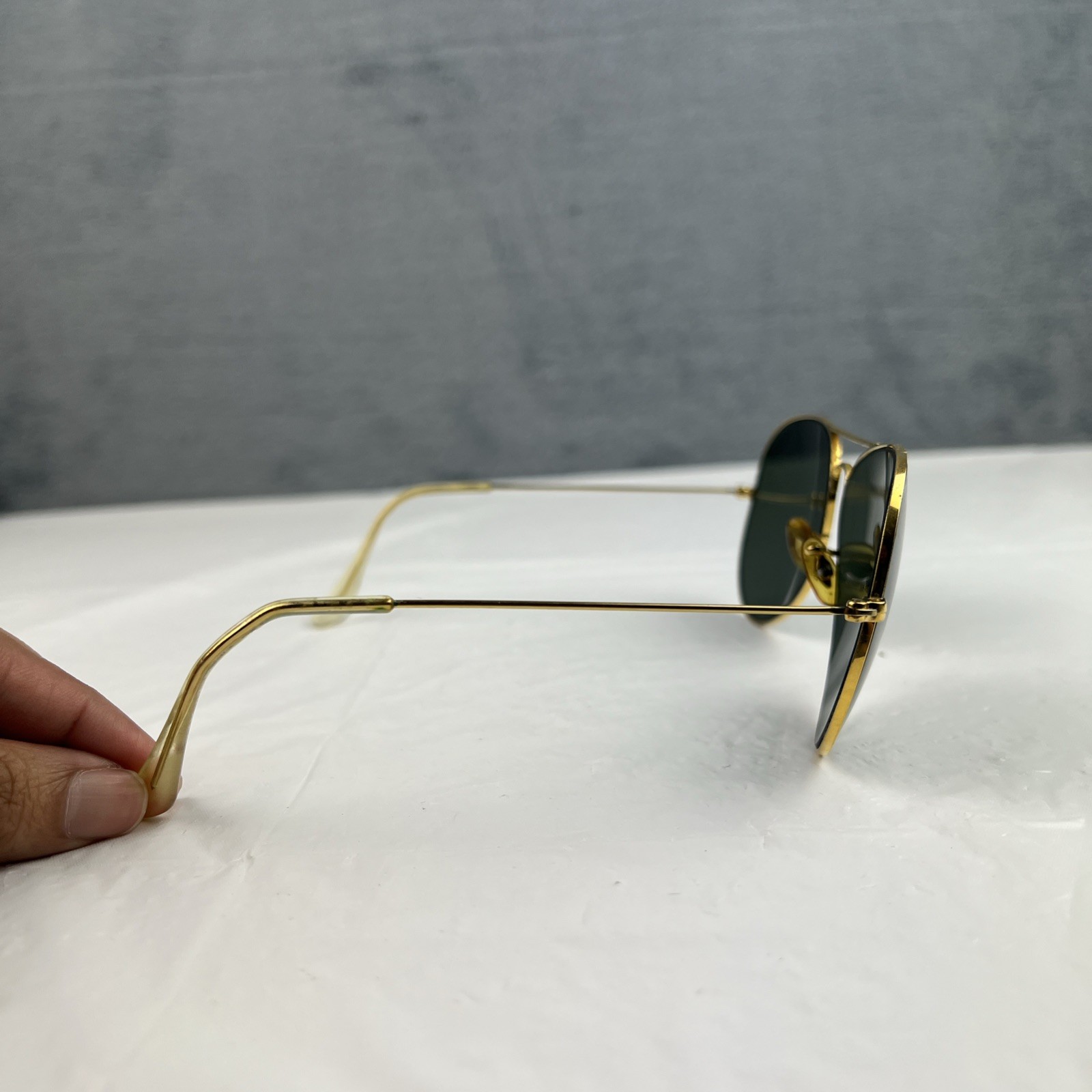 как выглядит Vintage B L Ray-Ban L2846 G15 Green Arista Large Metals II Aviator Sunglasses фото