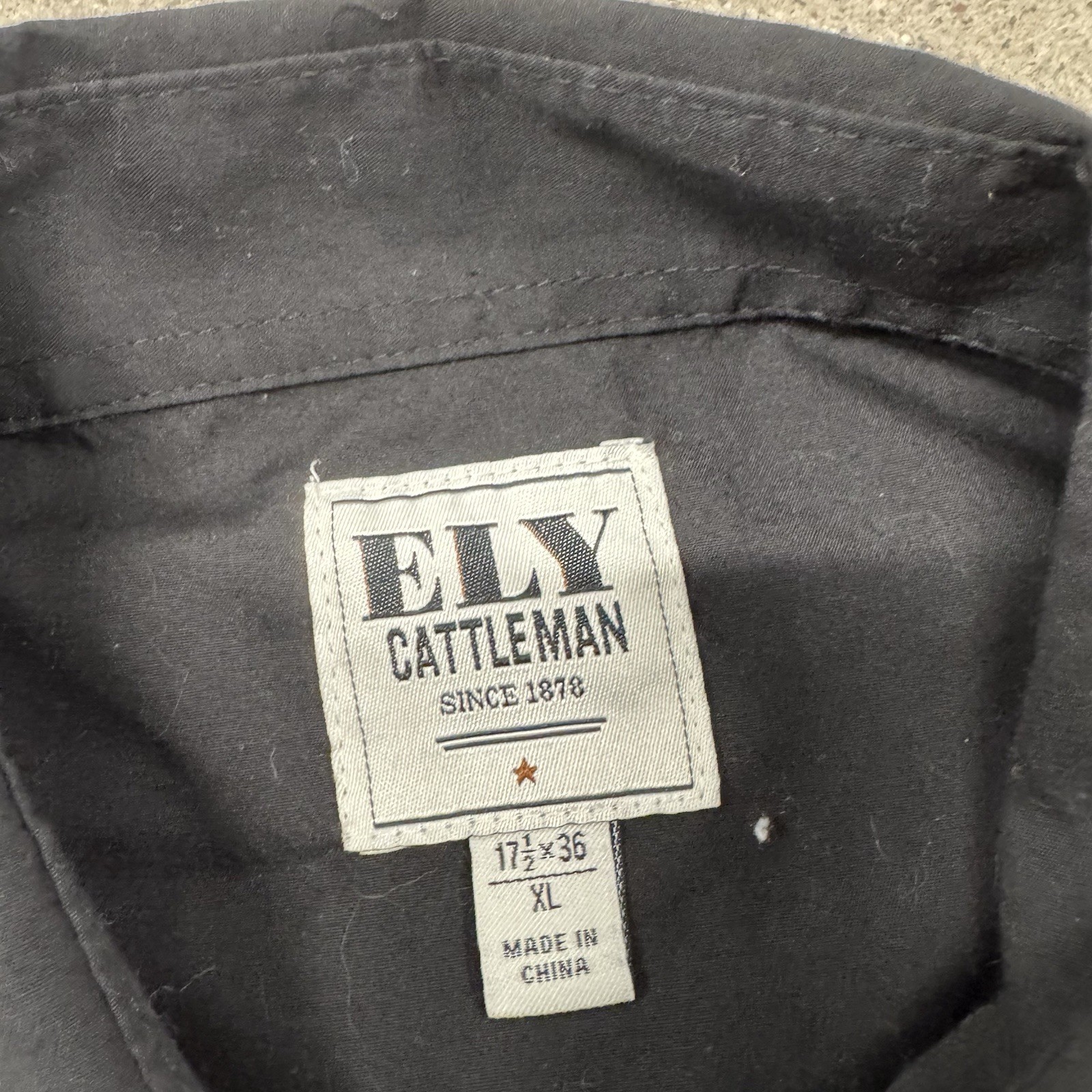Ely Cattleman Men Button Up Shirt XL Black Western Pearl Snap
