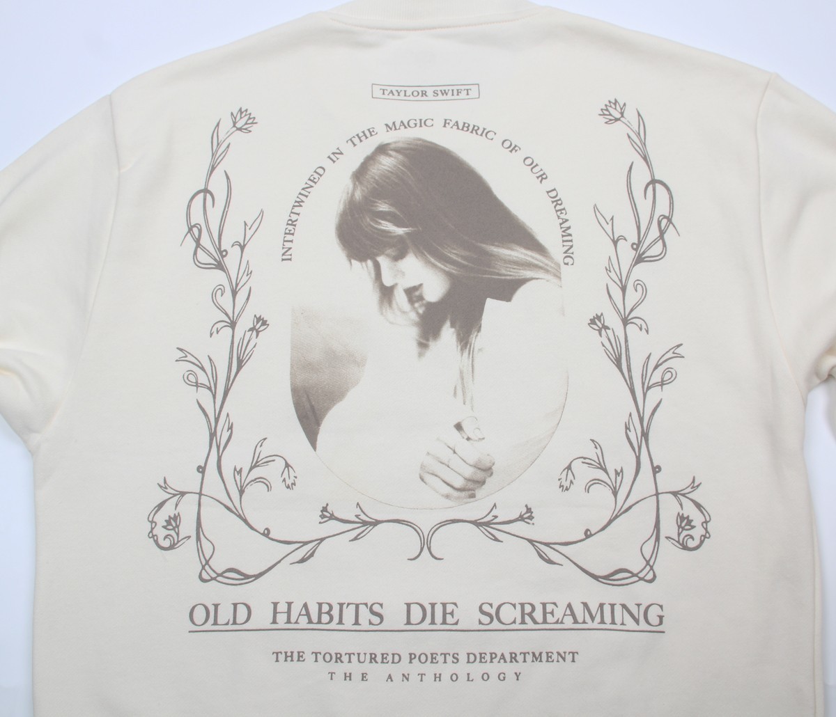 как выглядит Taylor Swift Old Habits Die Screaming Kanga Pocket Crewneck Sweatshirt Size XL фото