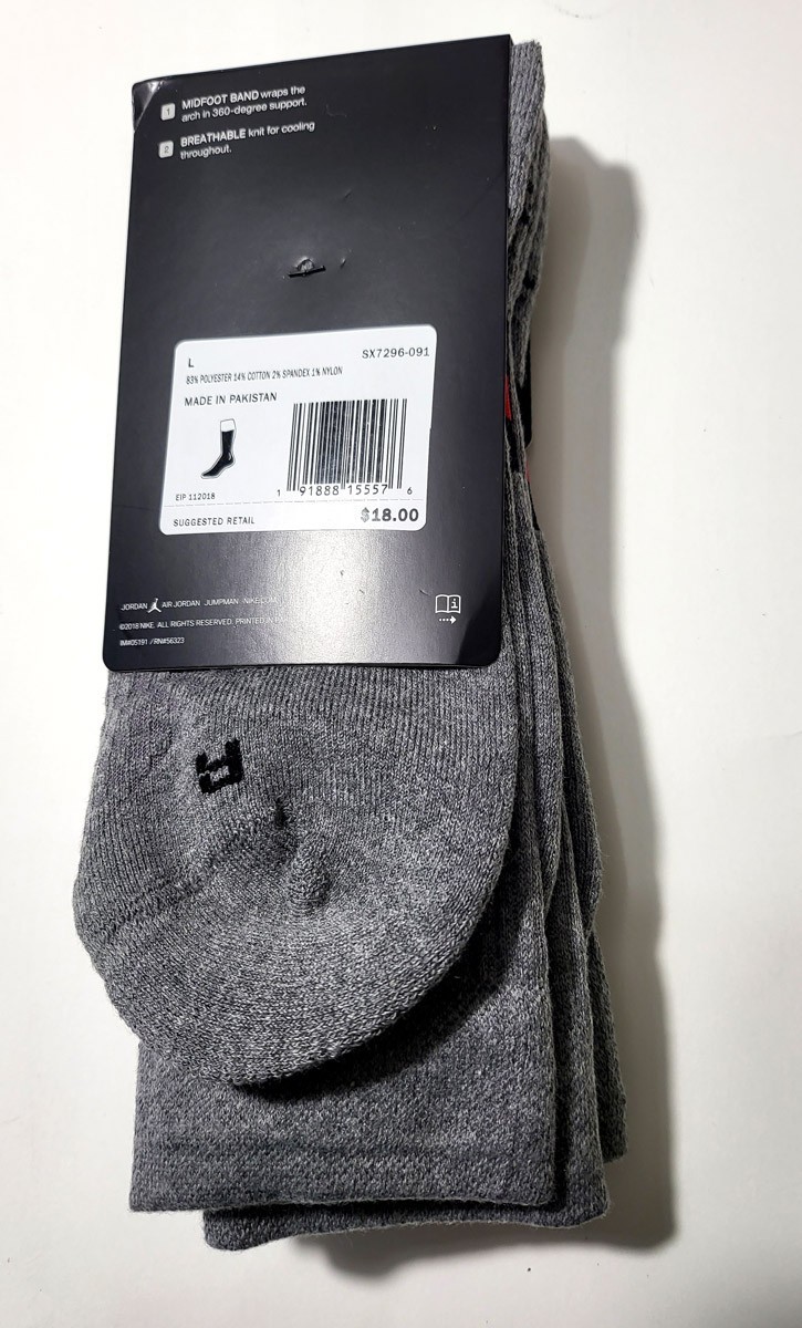 как выглядит 2-Pack Air Jordan Legacy Crew Socks - Grey - Mens Large 8-12 фото