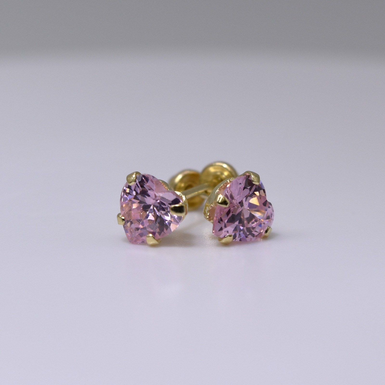 14K Yellow Gold Heart Stud Earrings Genuine Solid Gold CZ Small Sparkle Gift