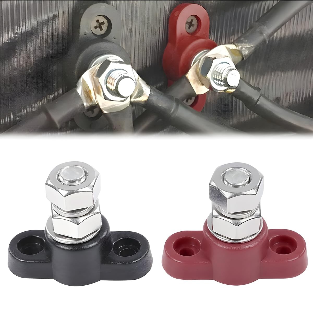2PCS 3/8 12V Car Single Stud Battery Junction Posts Block, Heavy Duty Auto Powe