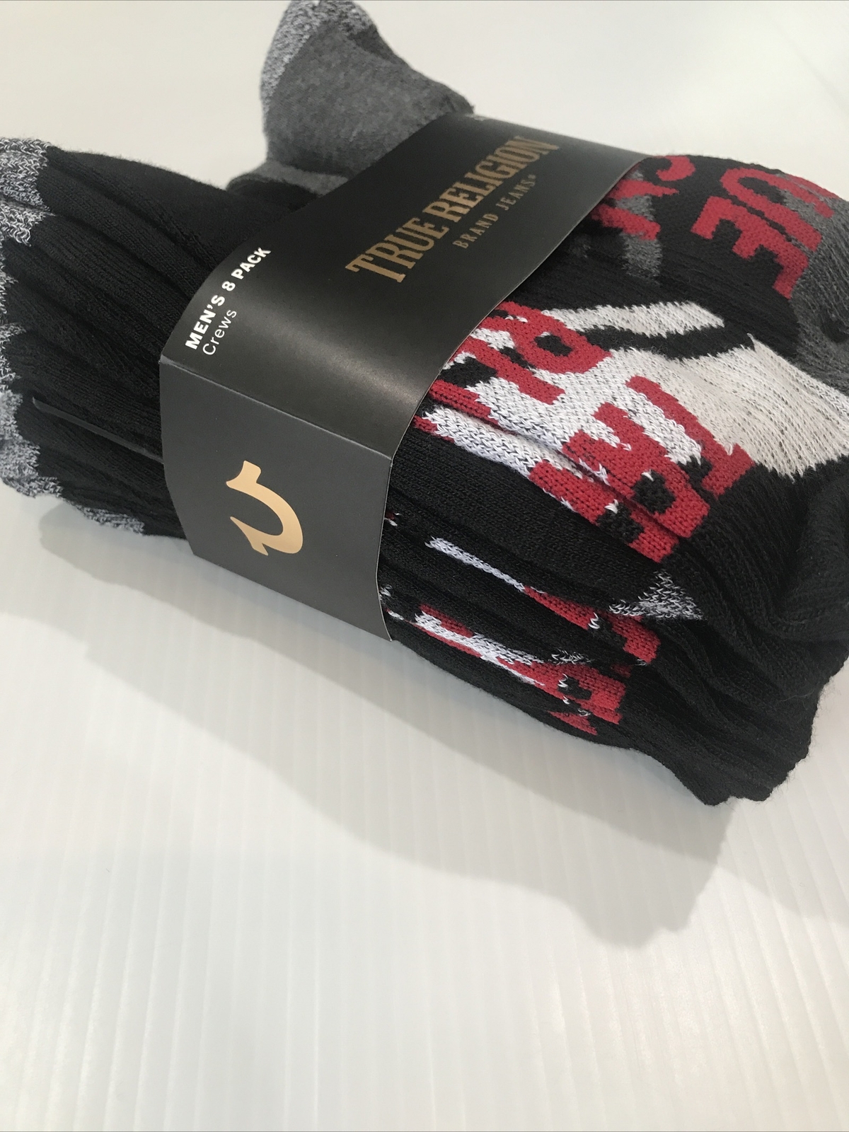 True Religion 8 Pack Socks Athletic Crew Black Gray Men s Shoes Size 6-12.5