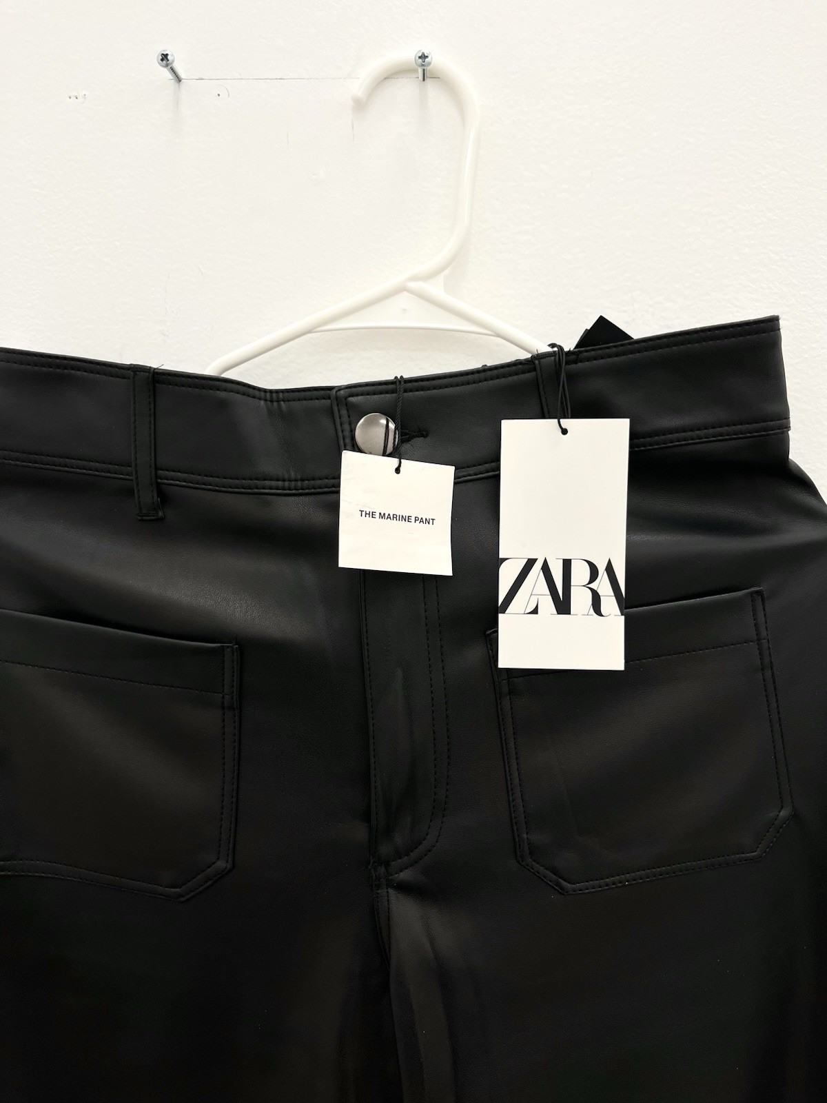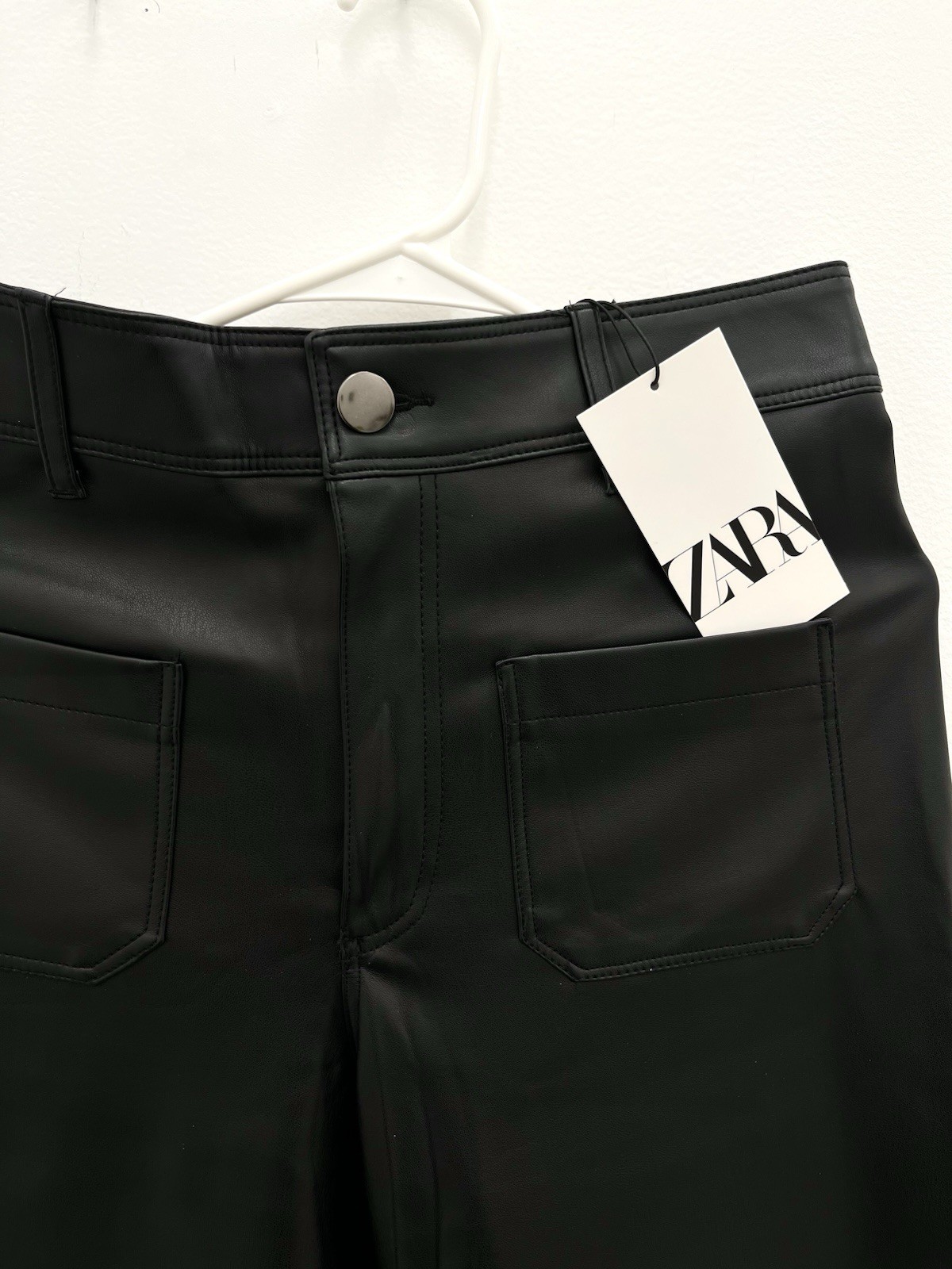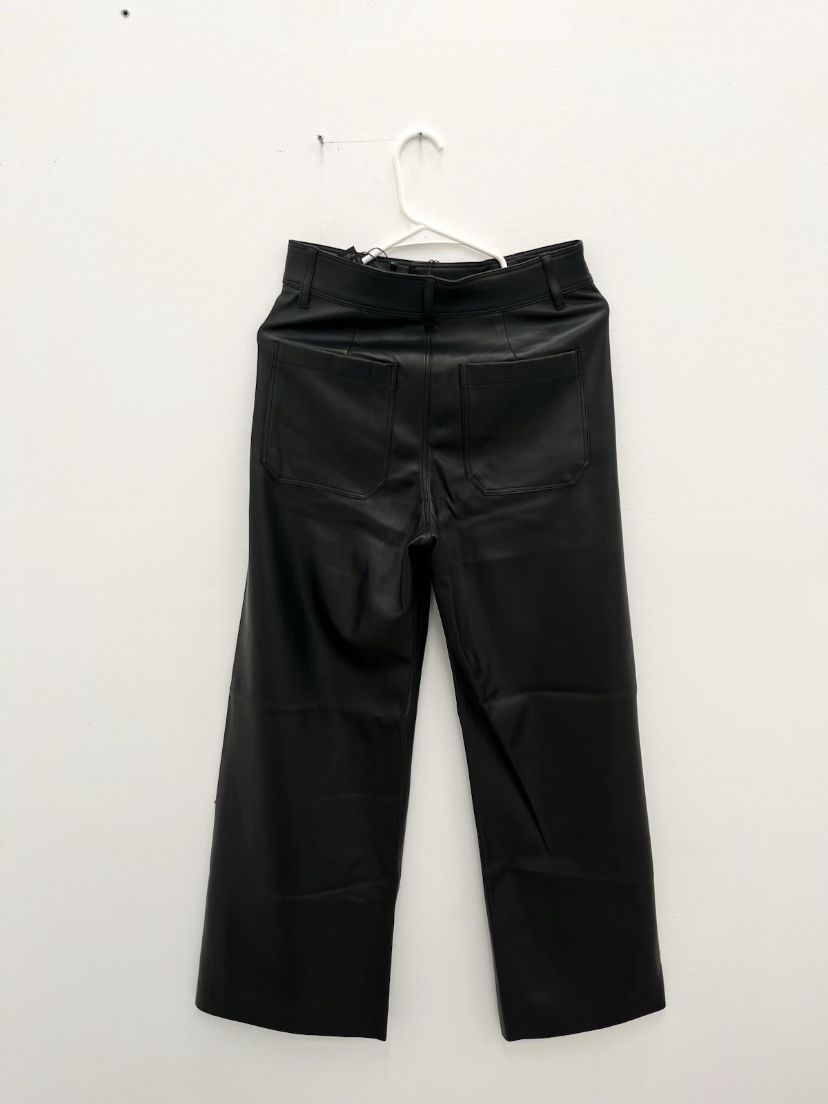 как выглядит New With Tags Zara Marine Faux Leather Wide Leg Pant Size US 6 Black Pockets фото