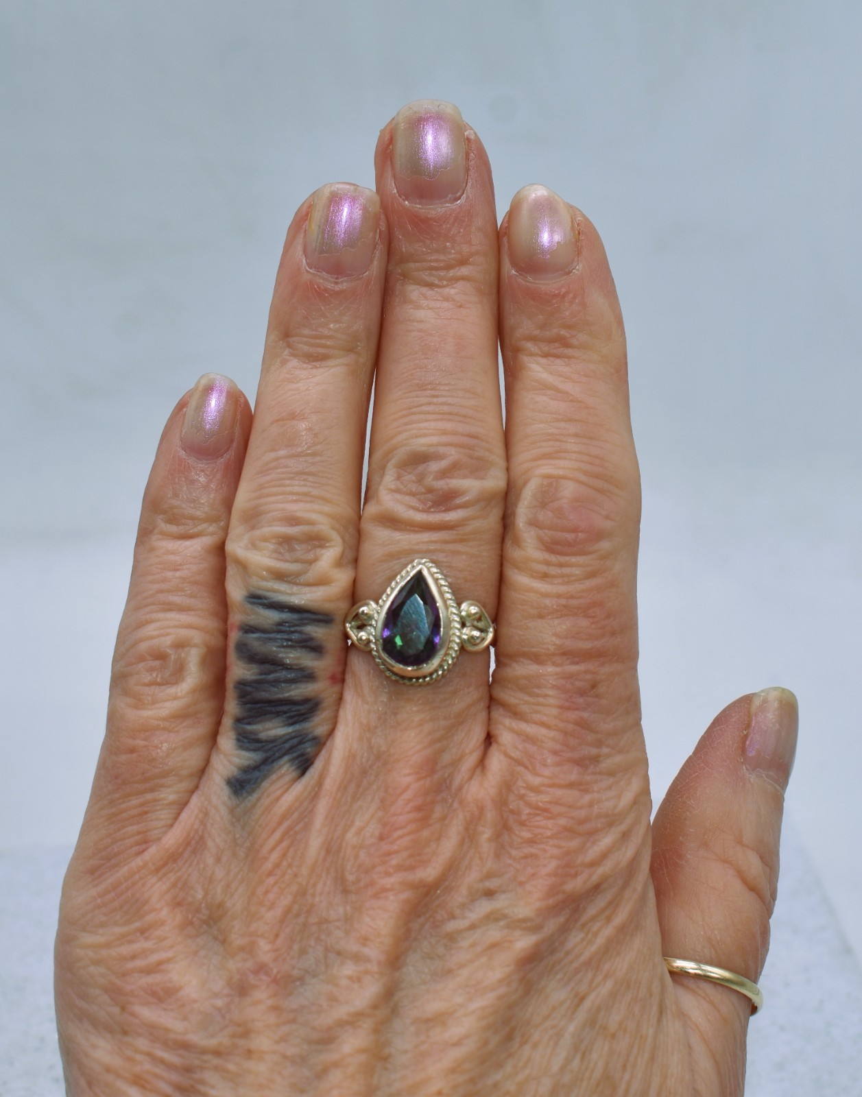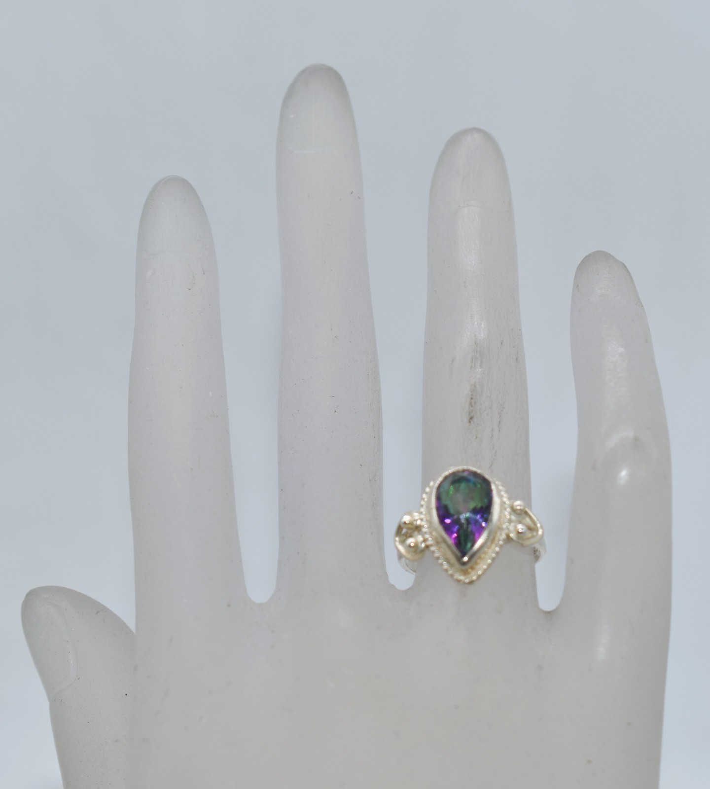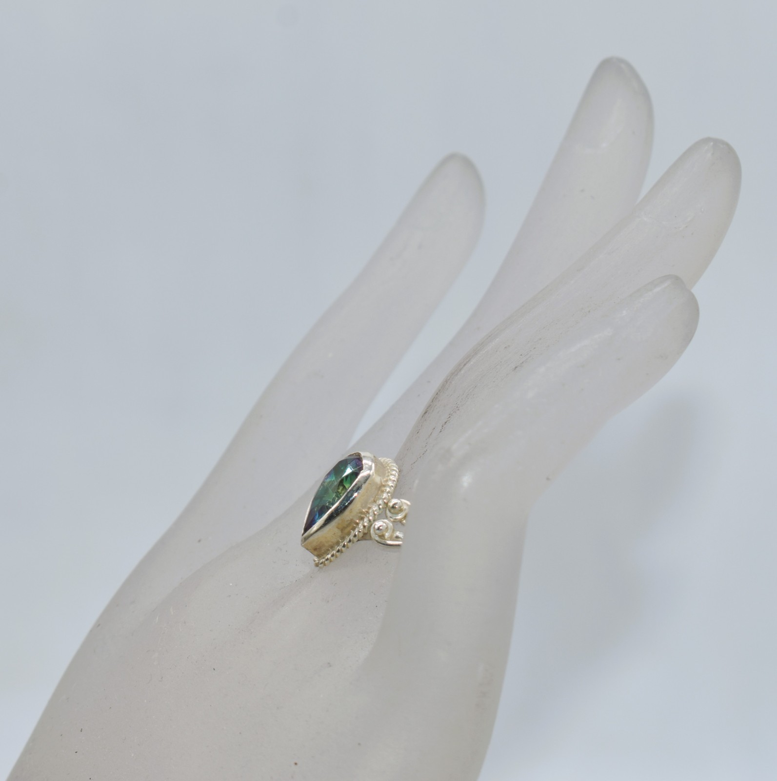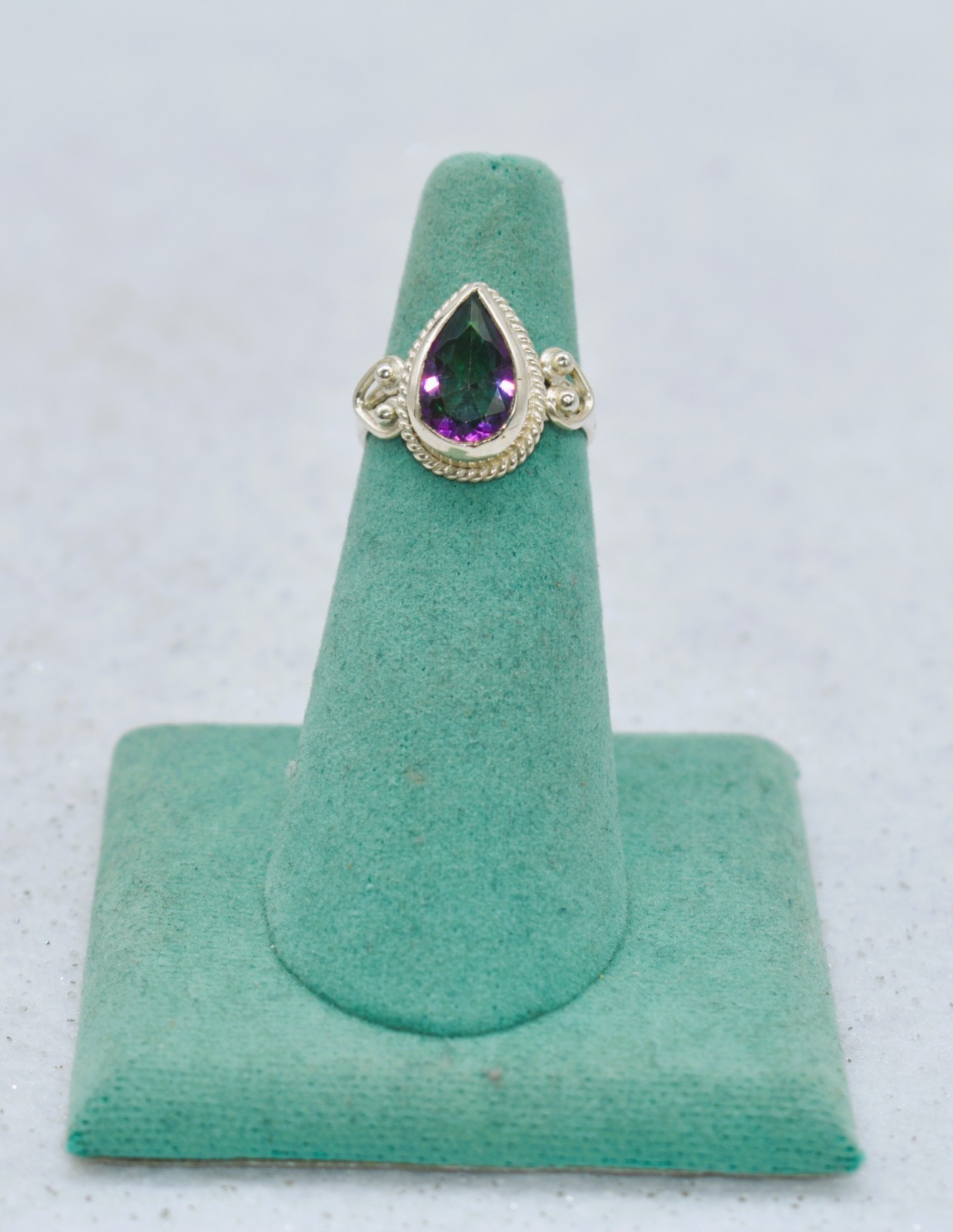 как выглядит Pear Shape Mystic Topaz Sterling Silver Rope Border Ring Size 6 фото