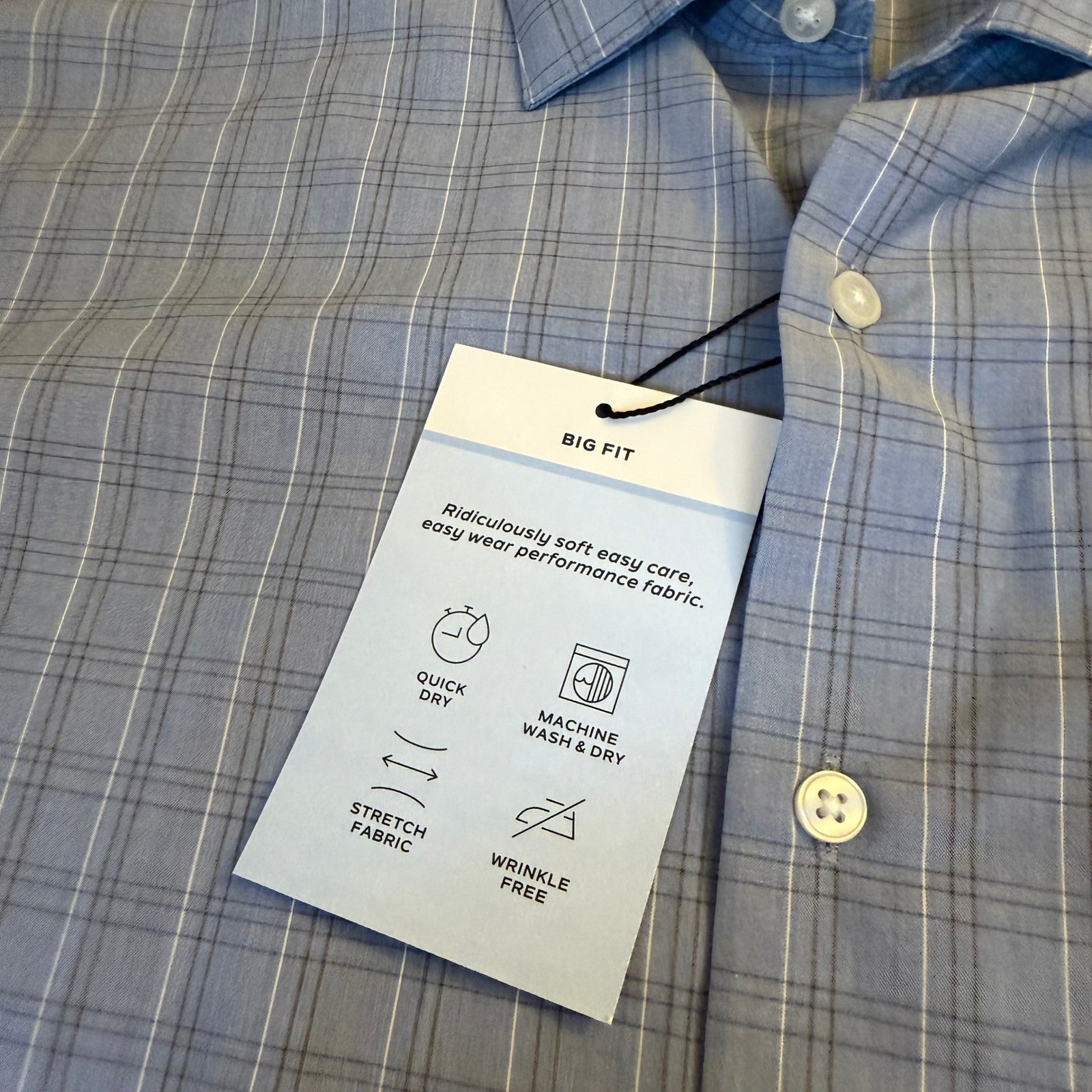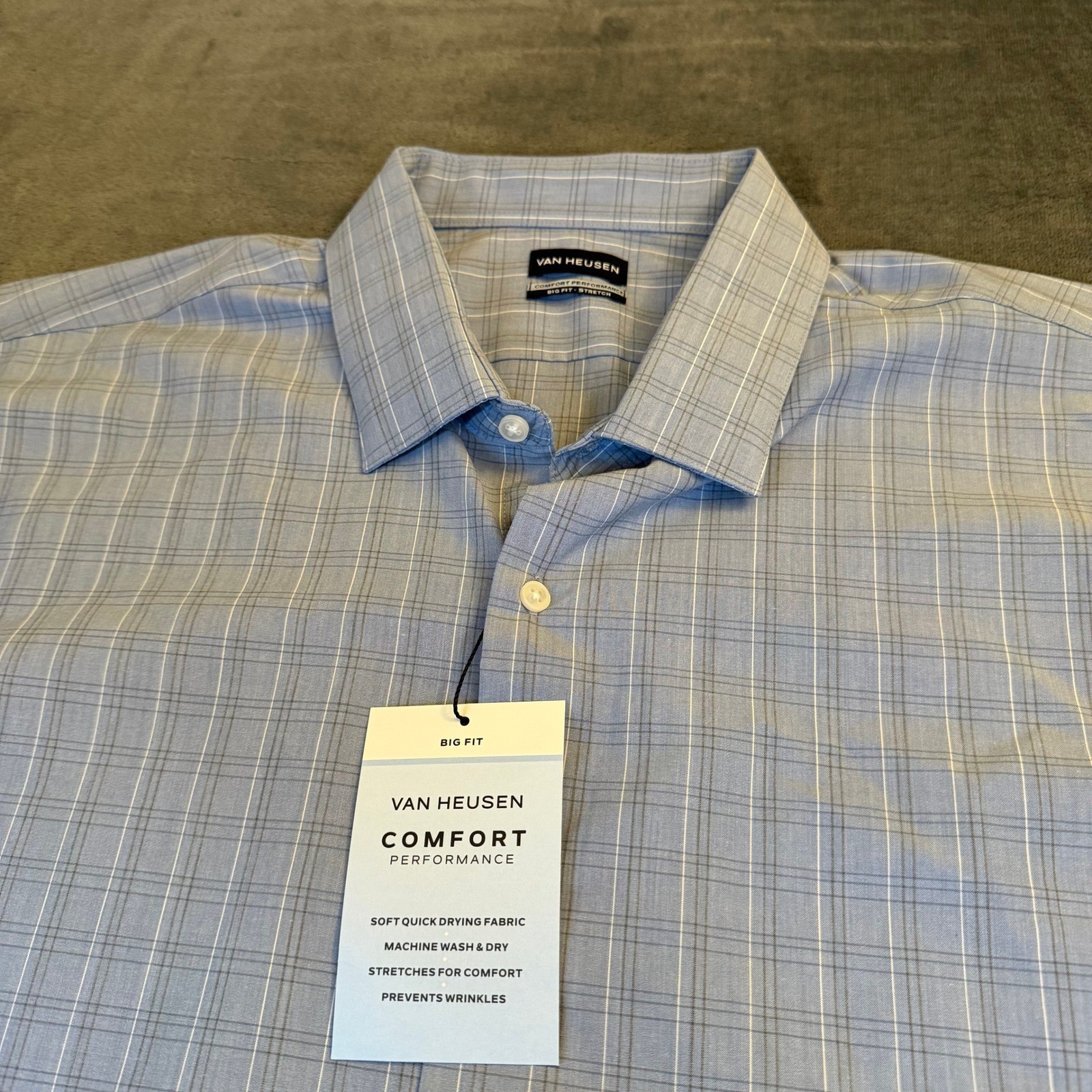 VAN HEUSEN Comfort Performance Dress Shirt Plaid Button Up Mens 18.5 34/35 NWT