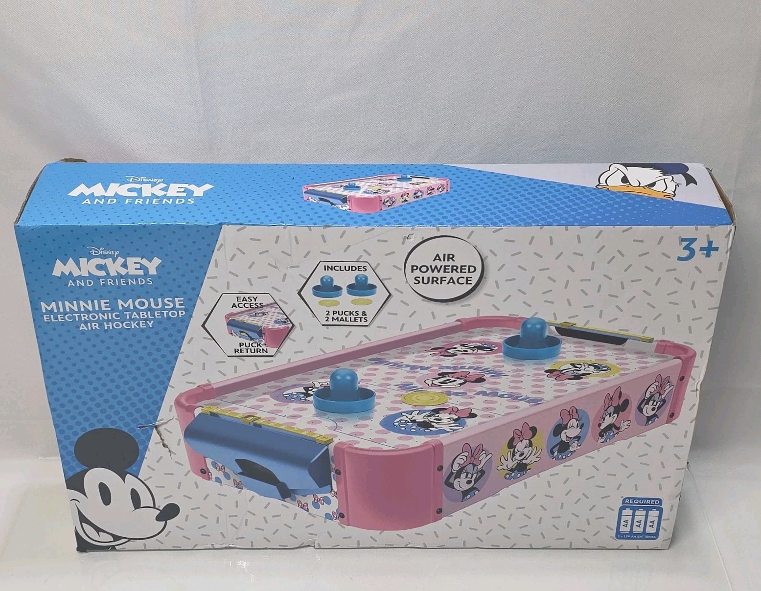 Disney Minnie Mouse Electronic Tabletop Air Hockey w/ Mallet and Pucks