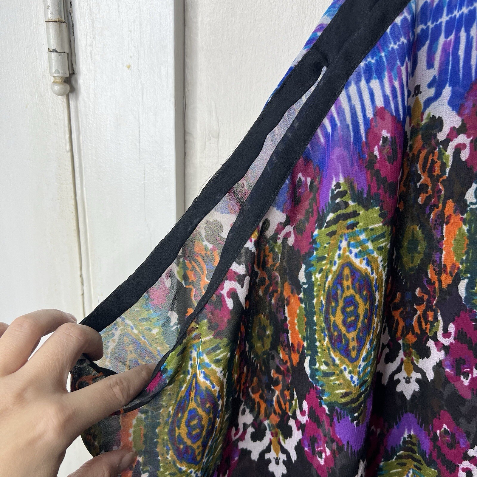 как выглядит Angie Blue Paisley Boho Sheer Kimono Blouse Size Medium фото