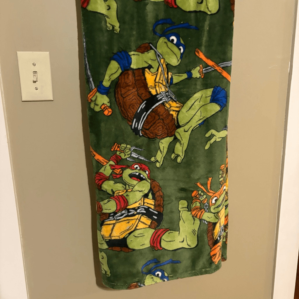 как выглядит Teenage Mutant Ninja Turtles Mayhem Green Plush Twin Blanket 60x90 NWT фото