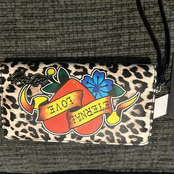 Ed Hardy leopard wallet with zipper NWT