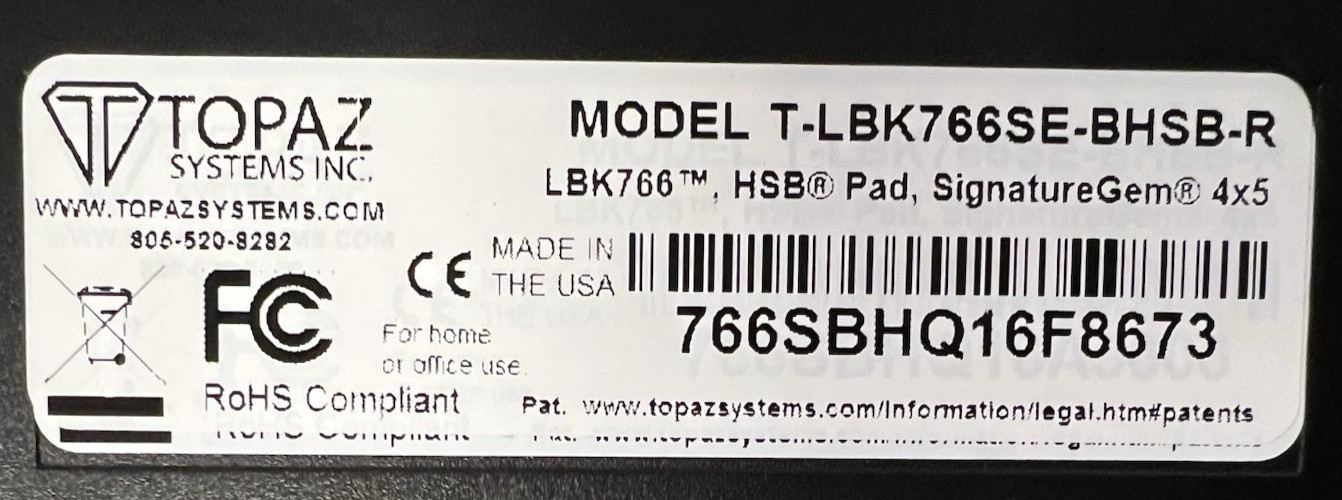LOT 2 Topaz T-LBK766SE-BHSB-R SignatureGem Pad LCD 4x5 USB Serial