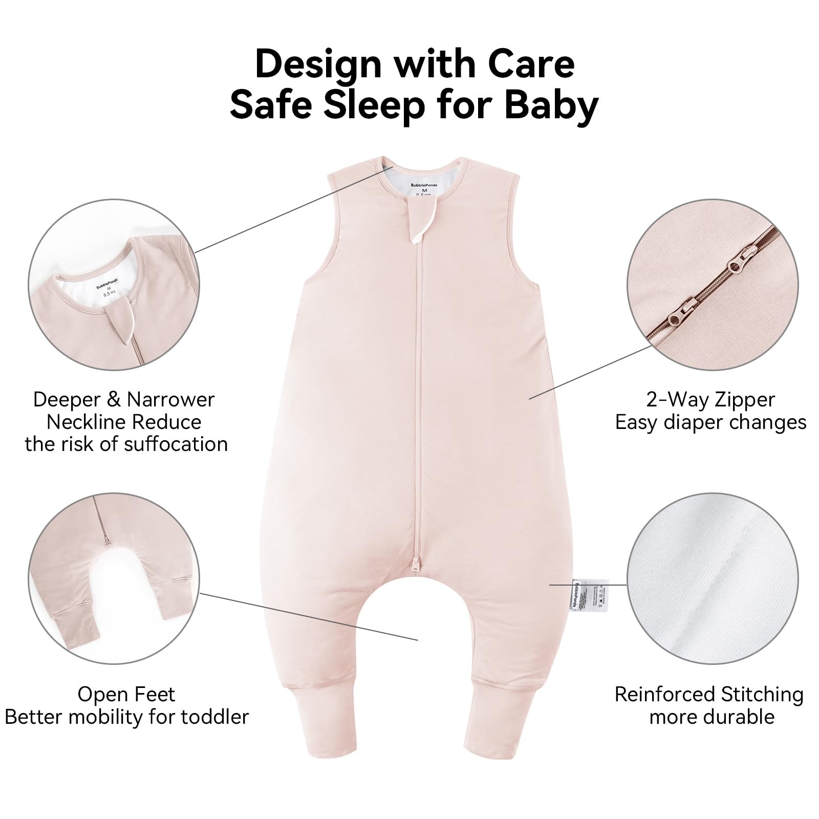 Bamboo Toddler Sleep Sack with Feet 0.5 Tog Lightweight 2-Way Zipper Blanket