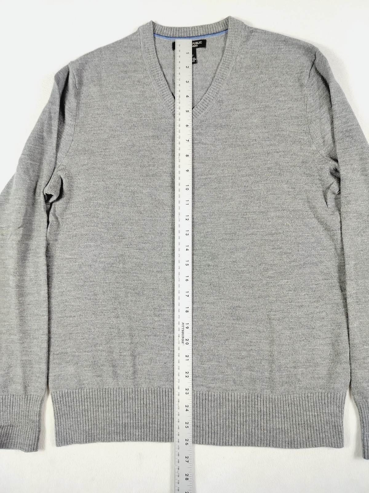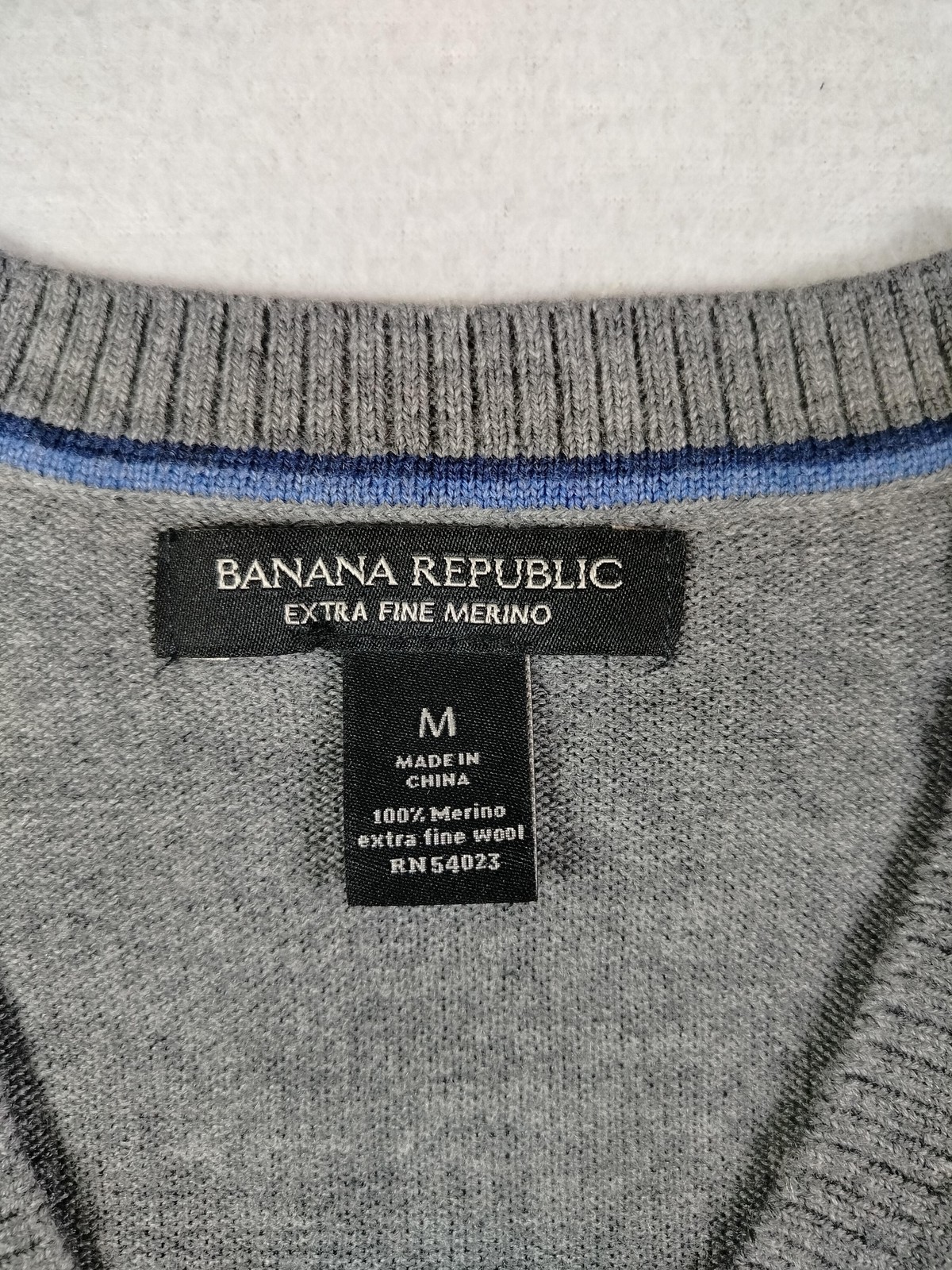 как выглядит Banana Republic Sweater Mens Medium Gray Extra Fine Merino Wool V Neck Knit фото