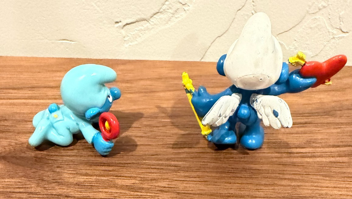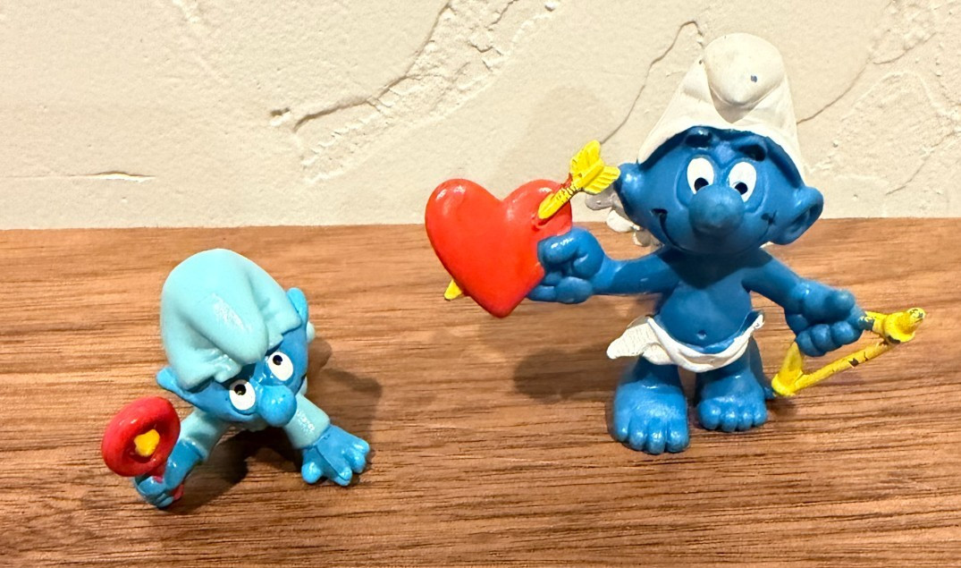 как выглядит 4 DIFF Smurf Figures 1980 1984 Roller Skating Smurfette Cupid Baby Smurfs фото