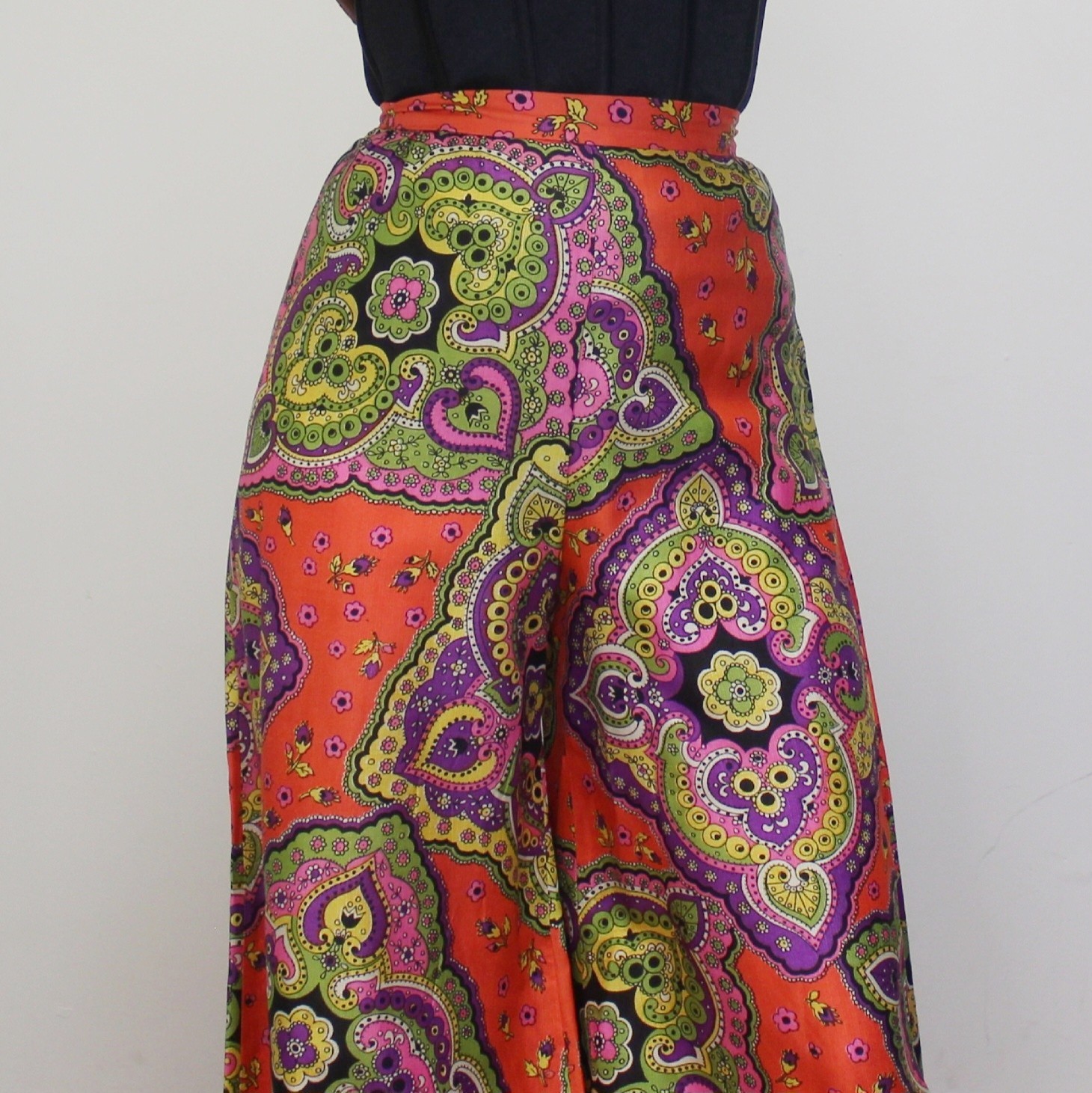 Vintage 70s Ultra Wide Leg Bell Bottom Palazzo Pants Groovy Hippie High Waisted