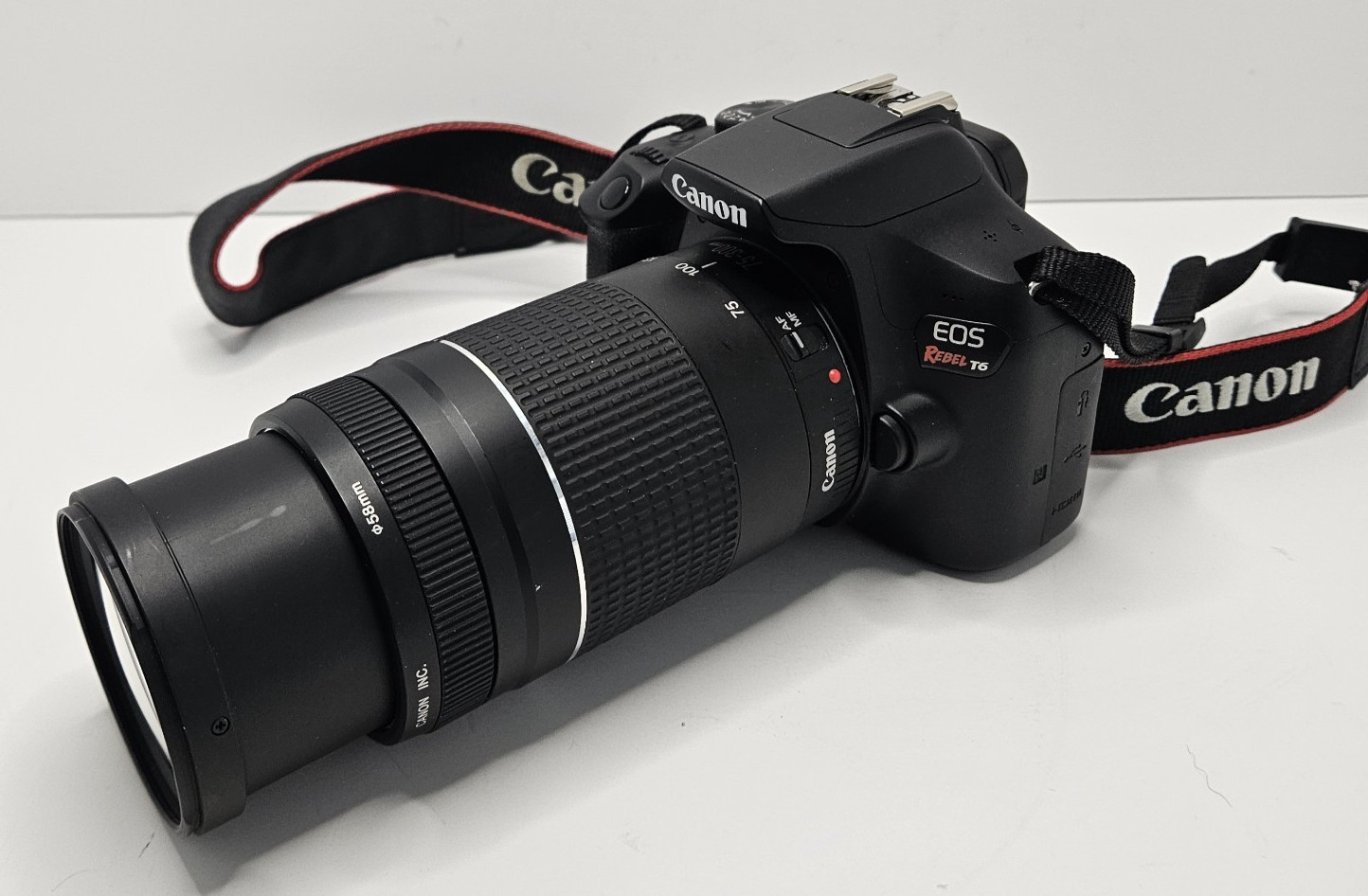 Canon EOS Rebel T6 DSLR Camera, EFS 18-55mm EF 75-300mm Lens With Carry Bag