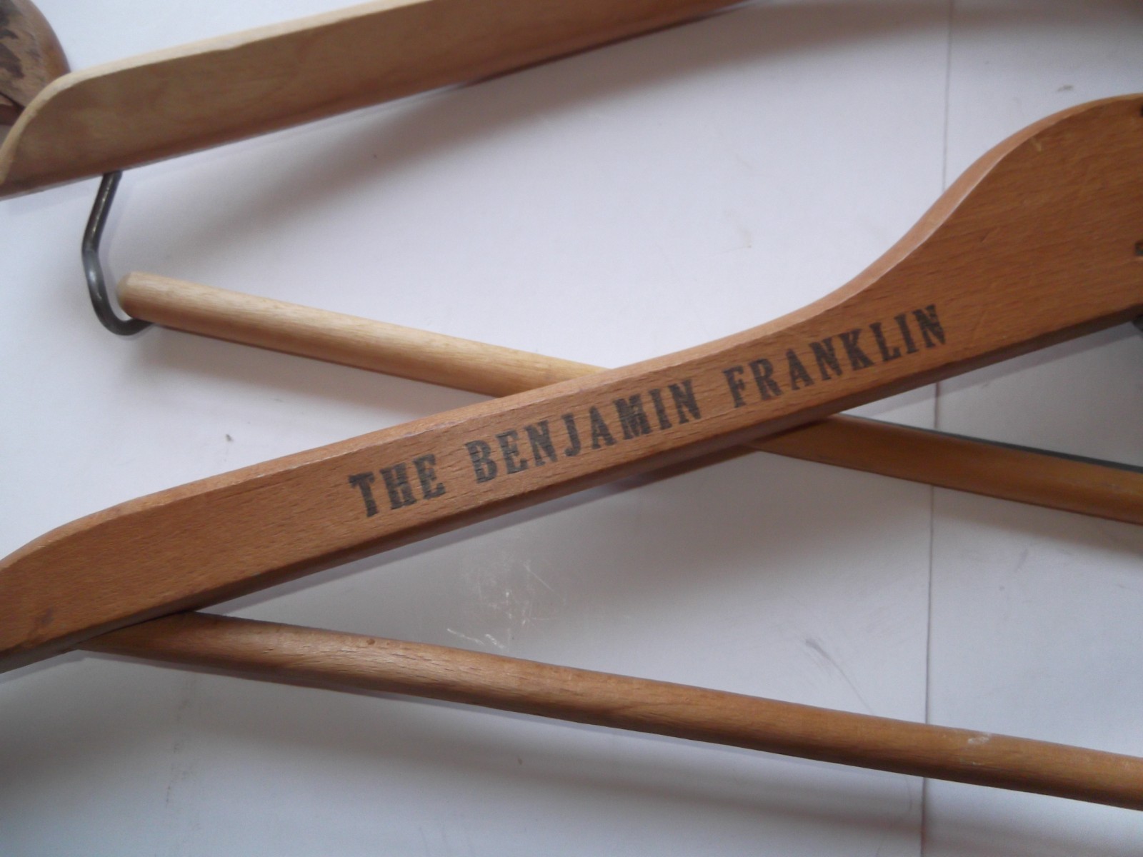 Lot of 6 Vintage Wooden Hangers Store Advertising Lord Ben Franklin PA. Antique