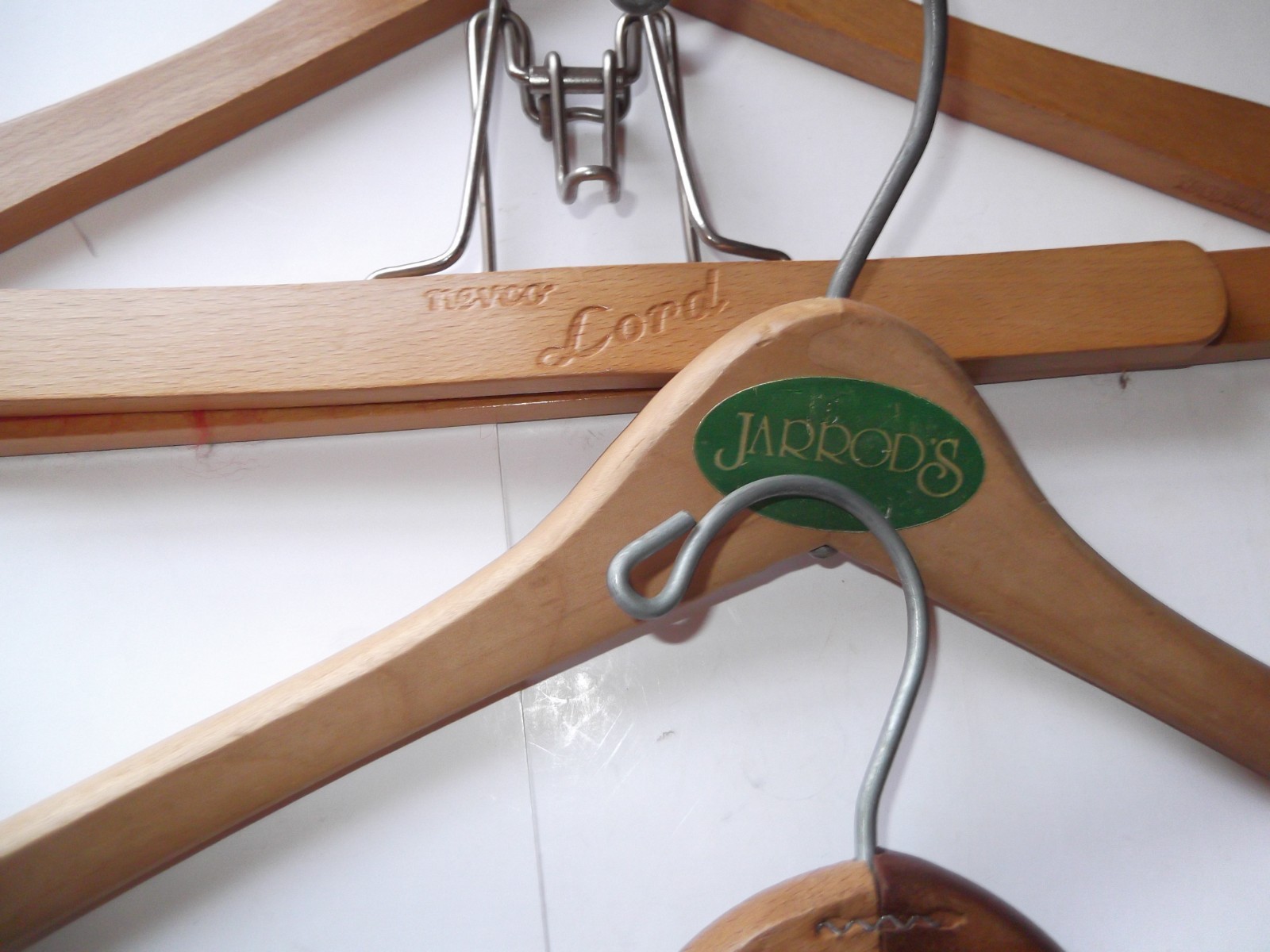 как выглядит Lot of 6 Vintage Wooden Hangers Store Advertising Lord Ben Franklin PA. Antique фото