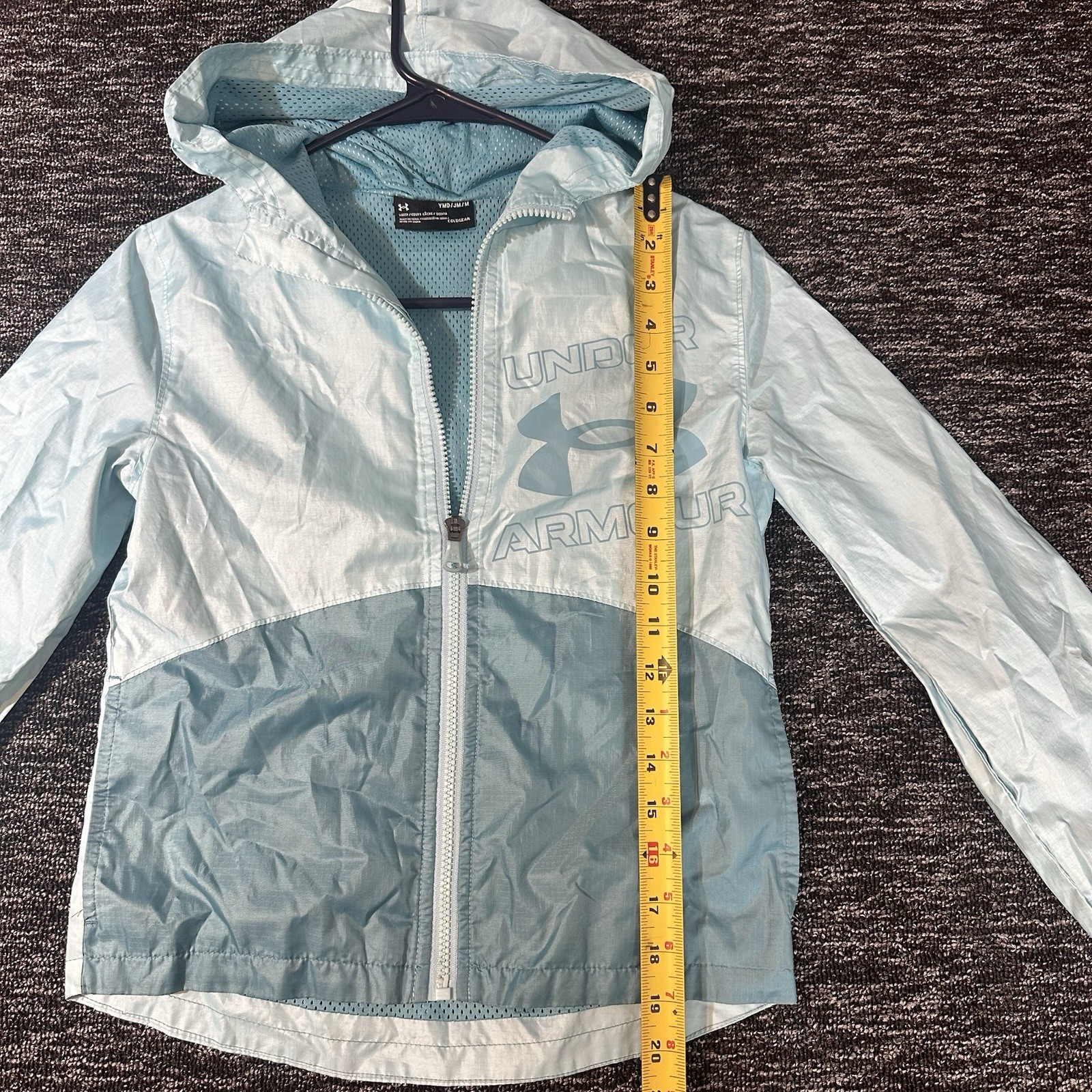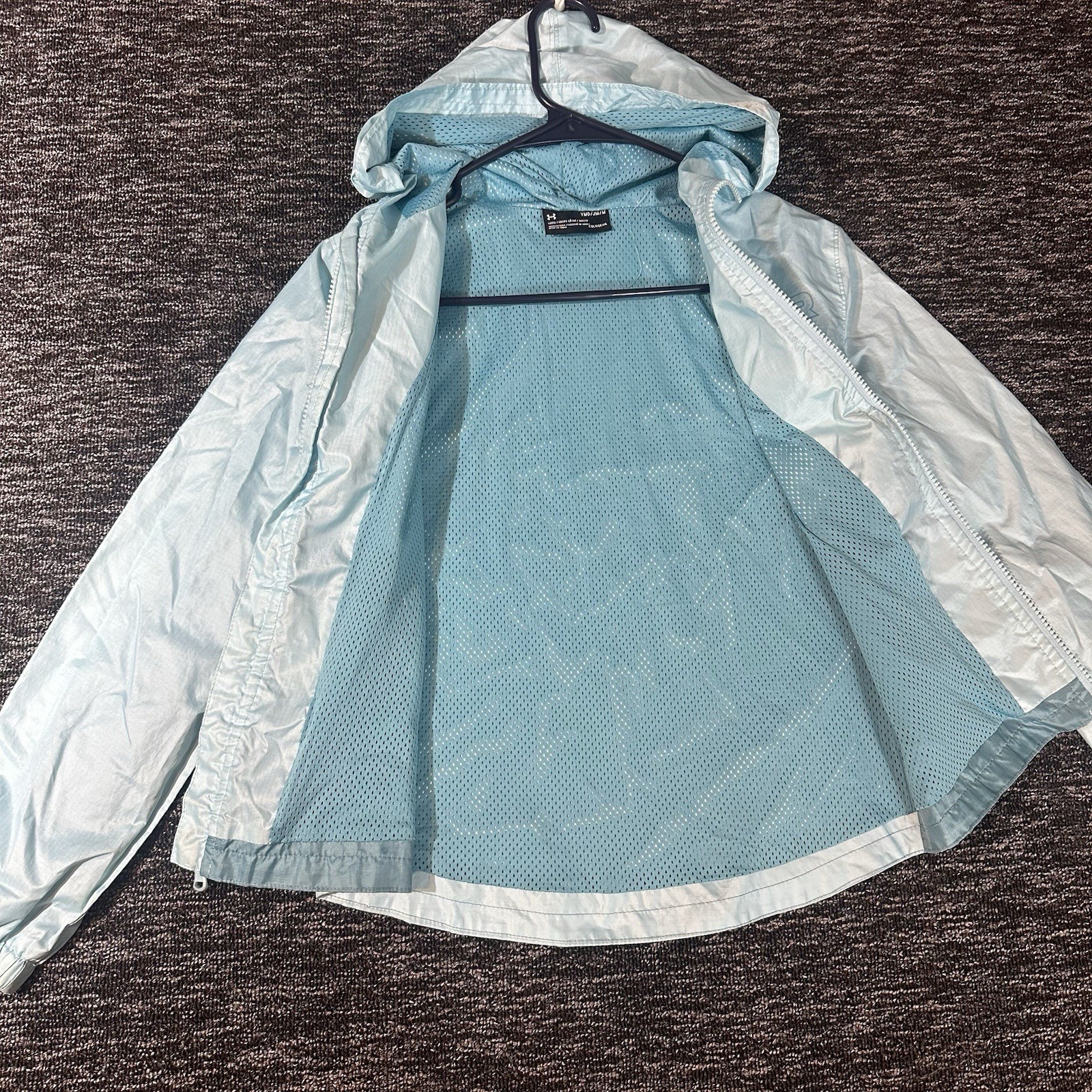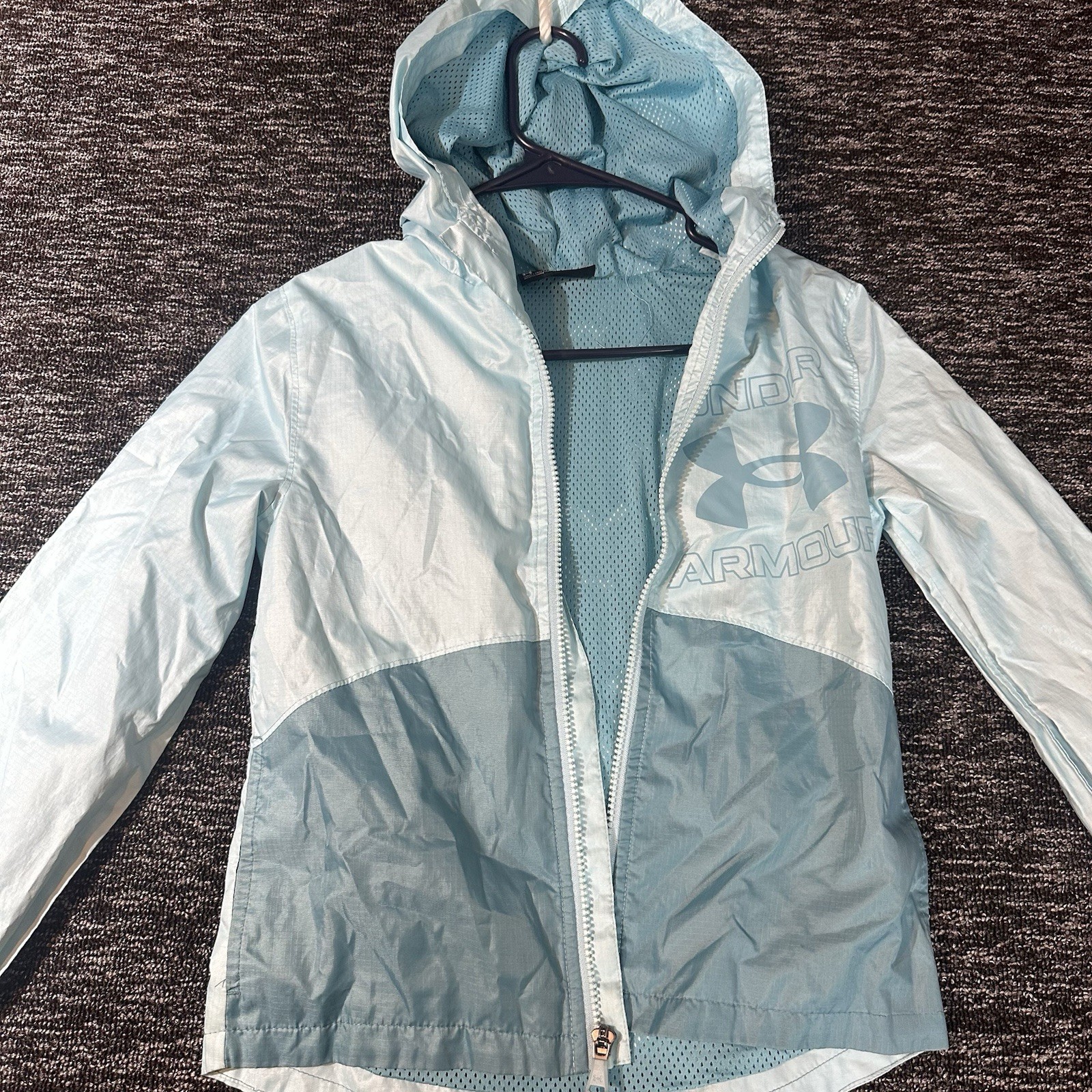 Under Armour Youth ColdGear Hooded Windbreaker Jacket Blue Full Zip Size M