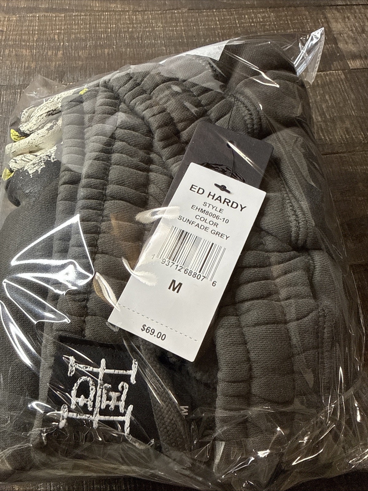 как выглядит Ed Hardy Sunfaded Grey Sweatpants Cross Heart Roses Tattoo Graphic Y2K M NWT фото