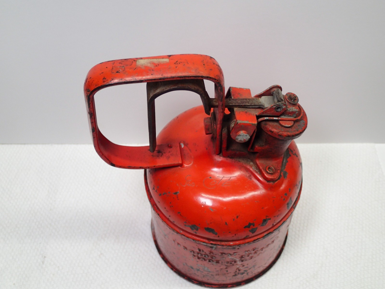 • Vintage Justrite Mfg Orange Safety Can 1 Quart Underwriters Laboratories