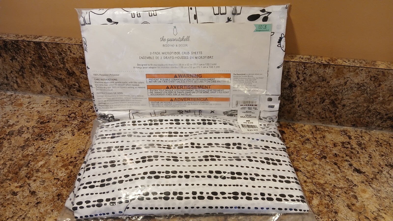The Peanutshell Bedding 2-Pack Microfiber Crib Sheets Fits 28x52 Std Blk-White