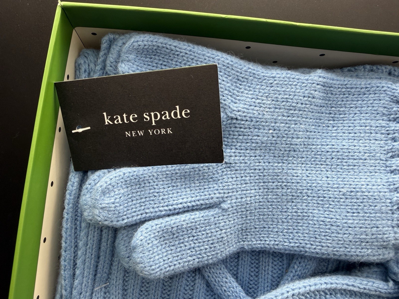 как выглядит KATE SPADE NEW YORK Cable Hat-Scarf-Gloves BLUE AUTUMN SKY 3-PCS фото