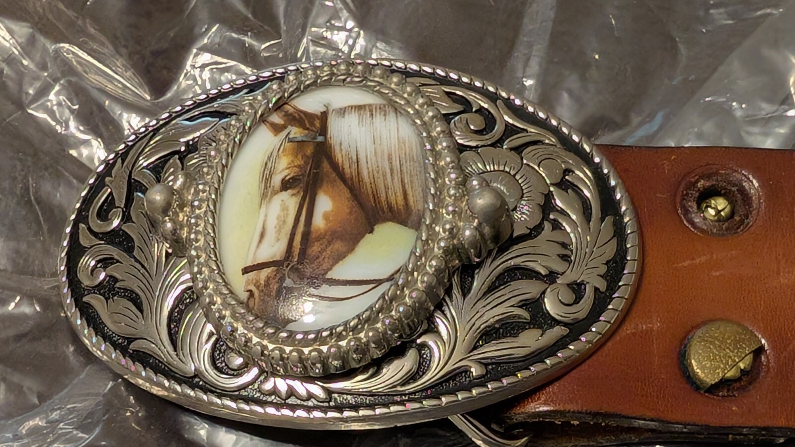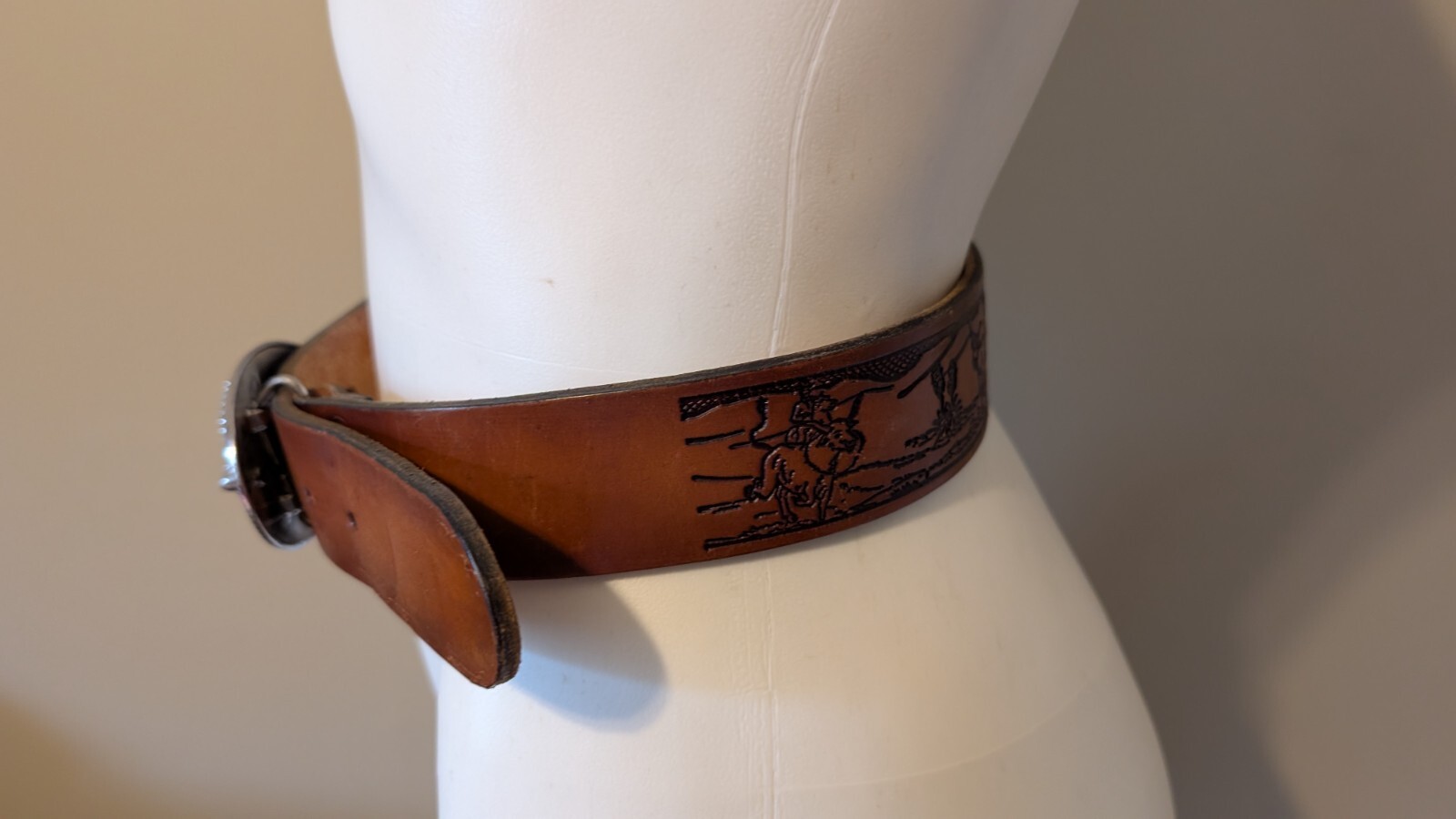 как выглядит Embossed Hand Tooled Leather Western Belt Horse Steer/Ranch w/Silver Horse Head фото