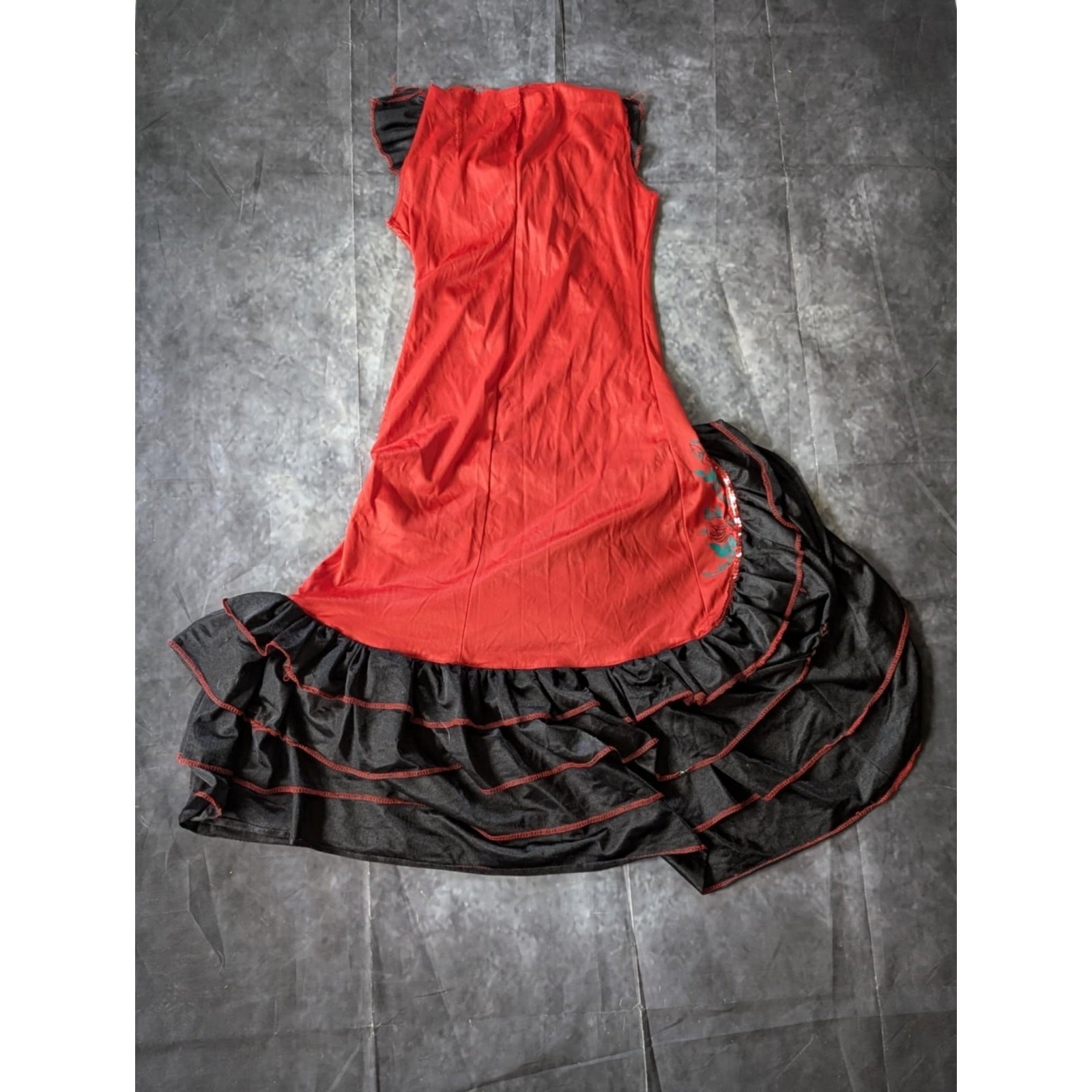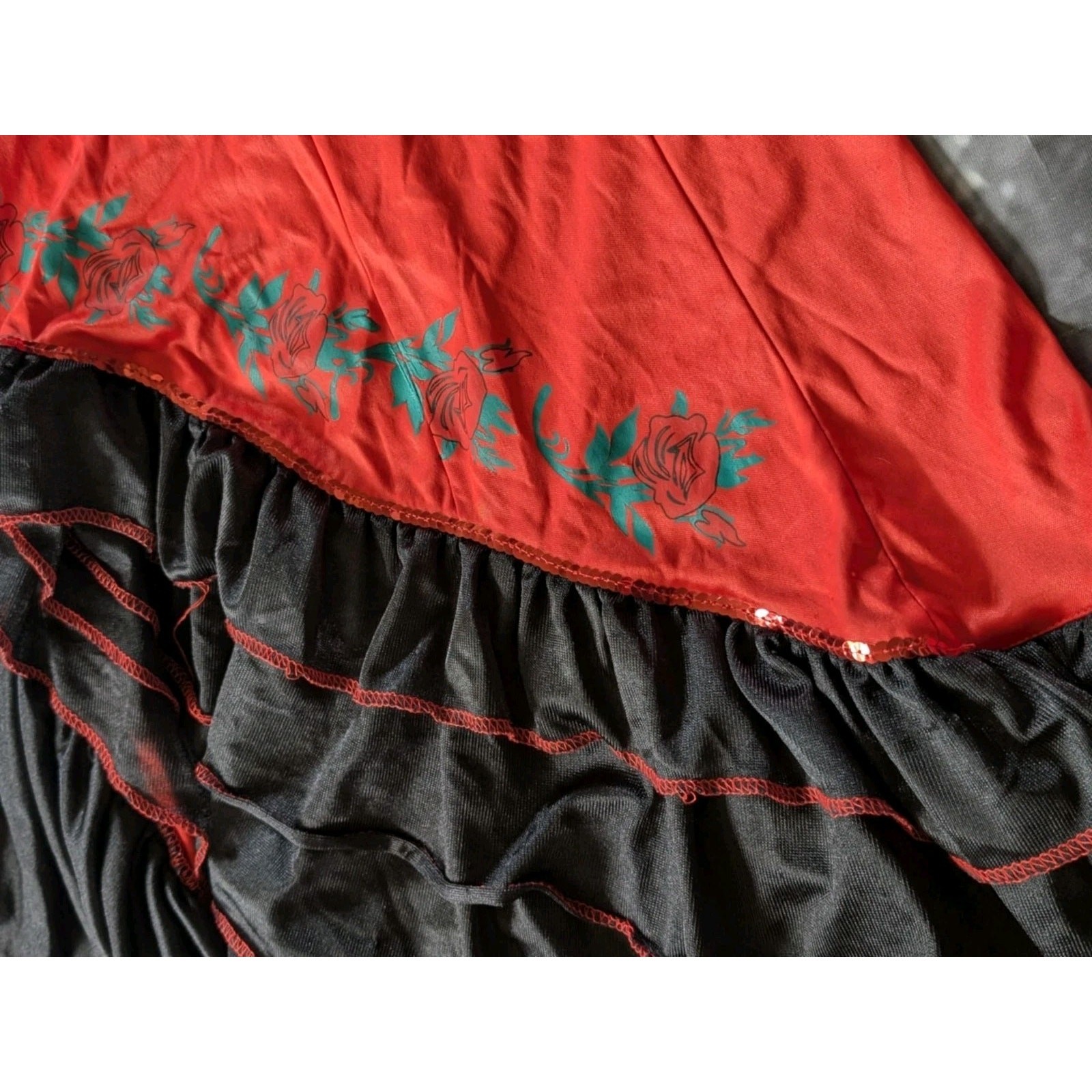 как выглядит Girls Mexican Spanish Dancer Dress Halloween Costume Red Black Size M Youth фото