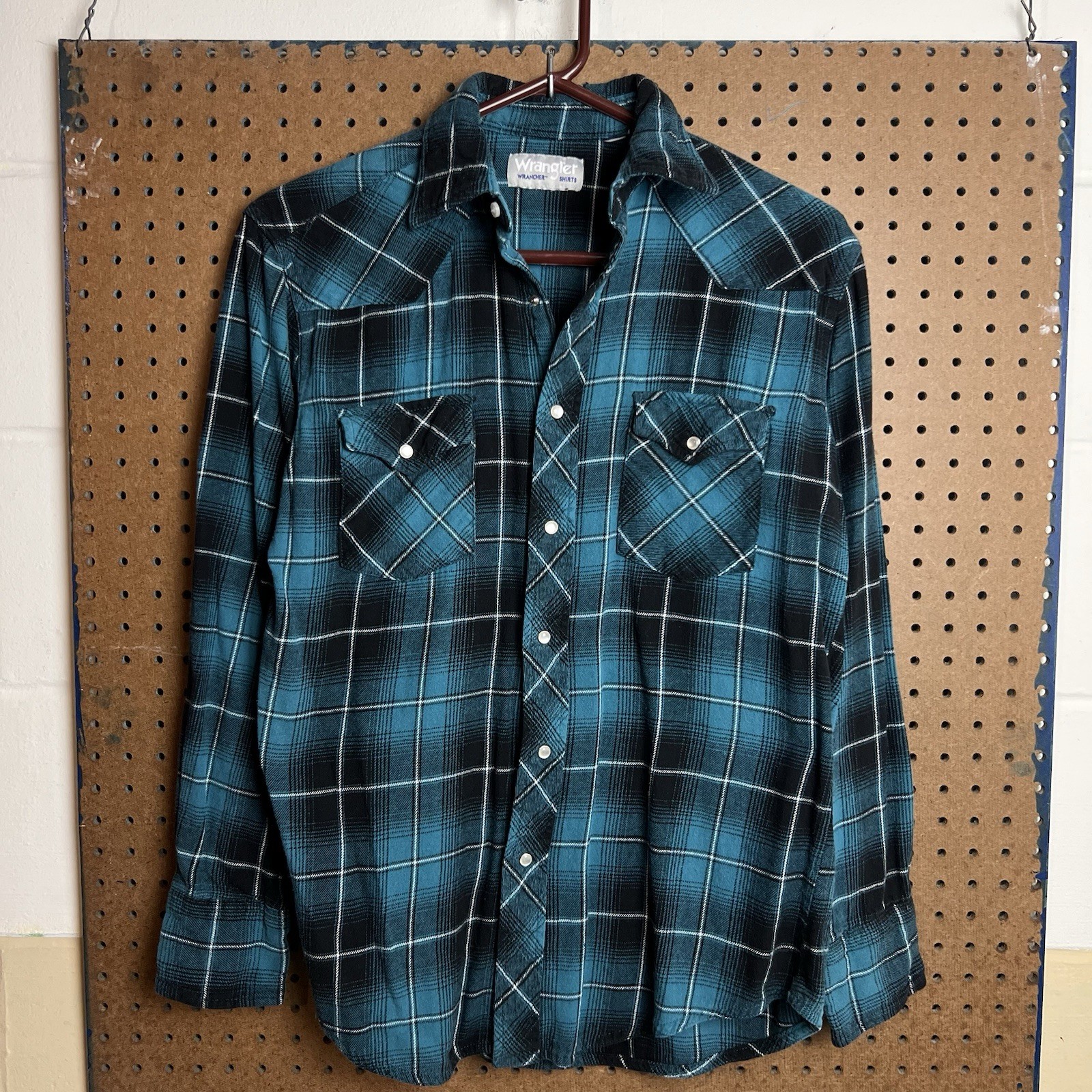 как выглядит Vintage Wrangler Pearl Snap Shirt Men Medium Blue Wrancher Western Cowboy 90s фото