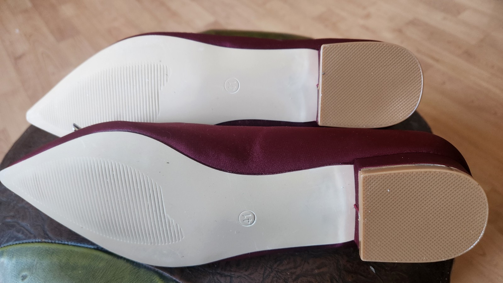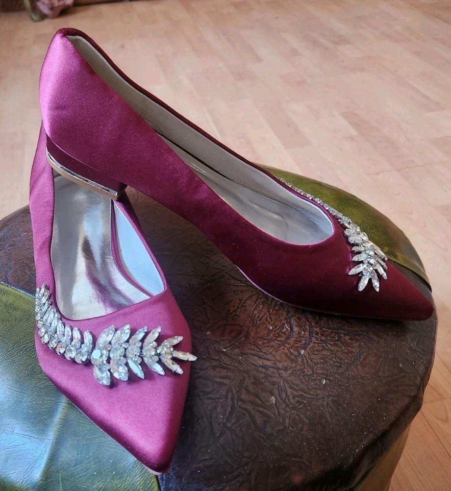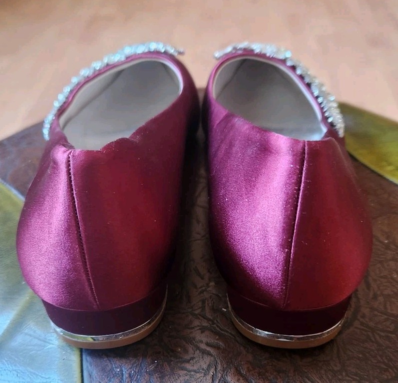 как выглядит Womens Flat Heel Pointed Toe Rhinestone Wedding Shoes Bridal Burgandy Sz 41 фото