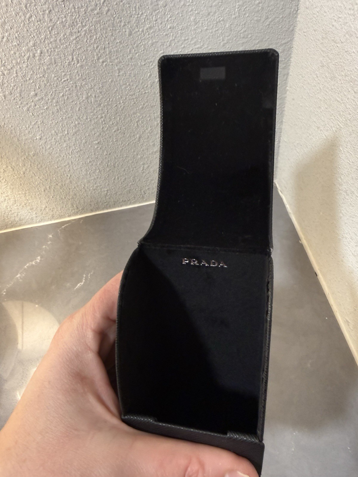 PRADA Black Leather Eyeglasses / Sunglasses Case Protection Hard Flap