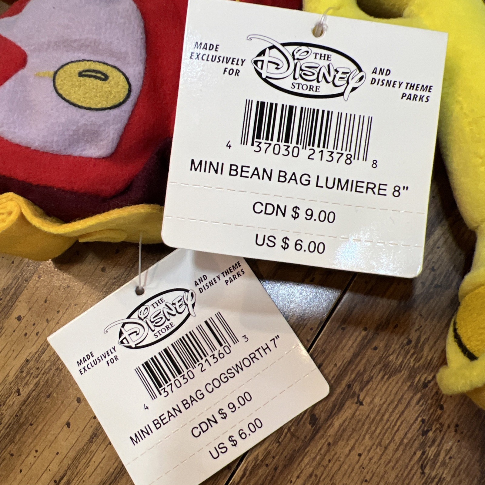 VTG Disney Store Beauty the Beast Bean Bag Plush Lot of 2 Lumiere Cogsworth